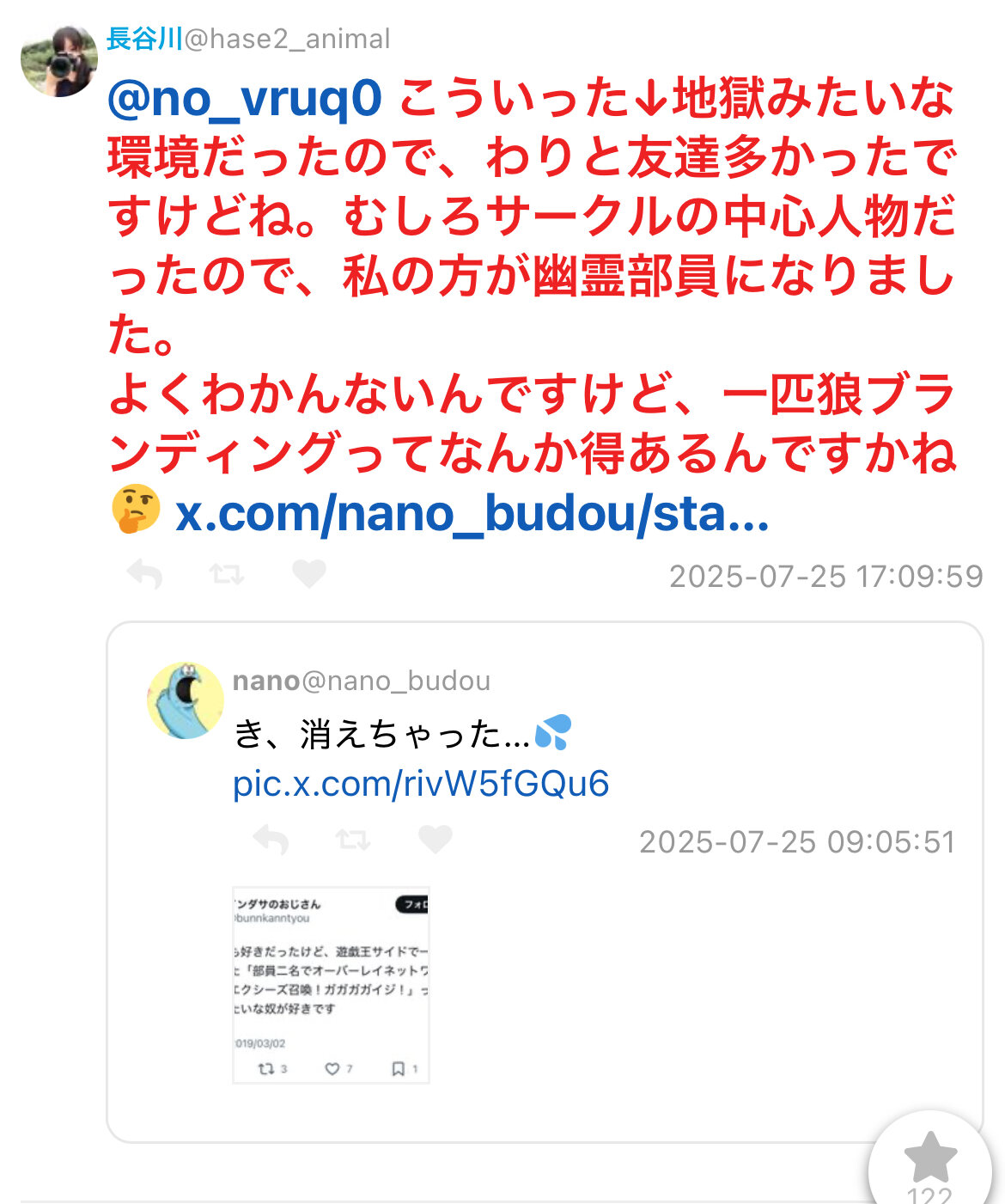 鍵垢のフォロワーが皆自分を裏切ることなど全く思いもせずライン超え発言かましてしまったのは何故…?本当になぜ…? - 96二次元好きの匿名さん25/08/02(土) 02:33:59