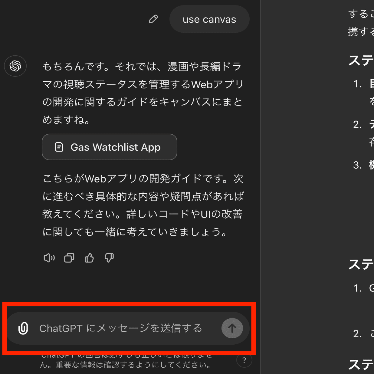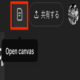 また、右上にOpen canvasアイコンが出ていれば、ここを押せばcanvas機能が開きます。