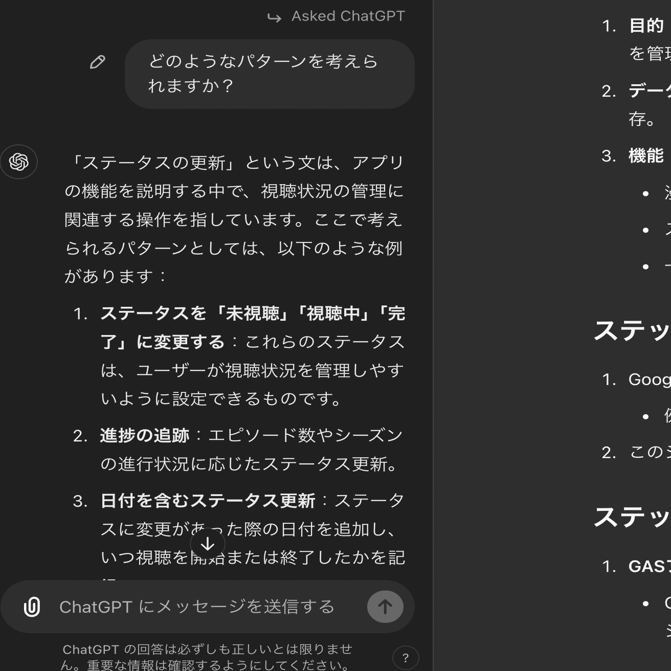 ChatGPTのおすすめに従って、文章が分割されました。