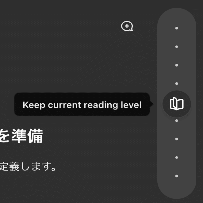 このリーディングレベルボタンを押すと、以下のように上下にスライドできる縦長の操作バーが出現します。