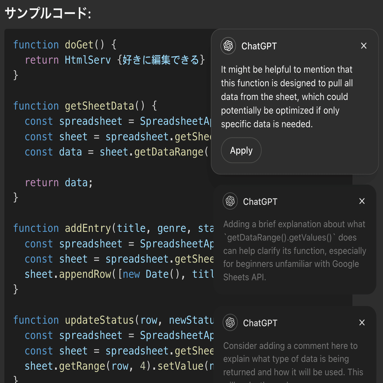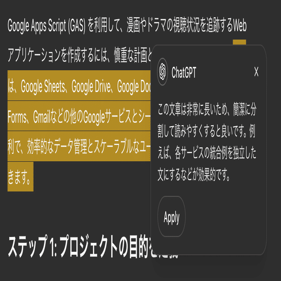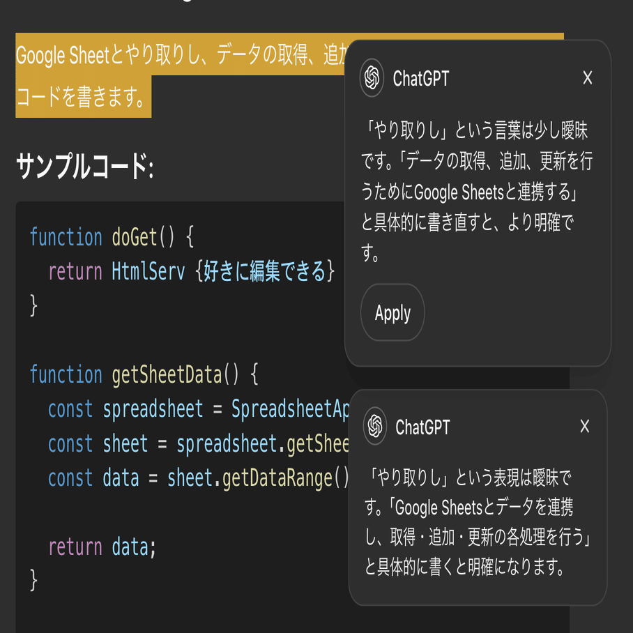 ChatGPTによる部分編集機能
