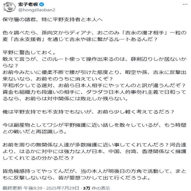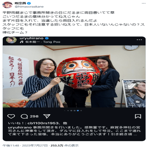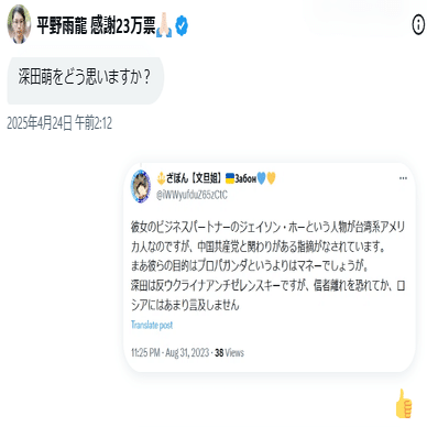 2025年の参院選、「平野雨龍陣営にロシアが間接的に関与していたか?」と疑わしき事例があったので紹介します。