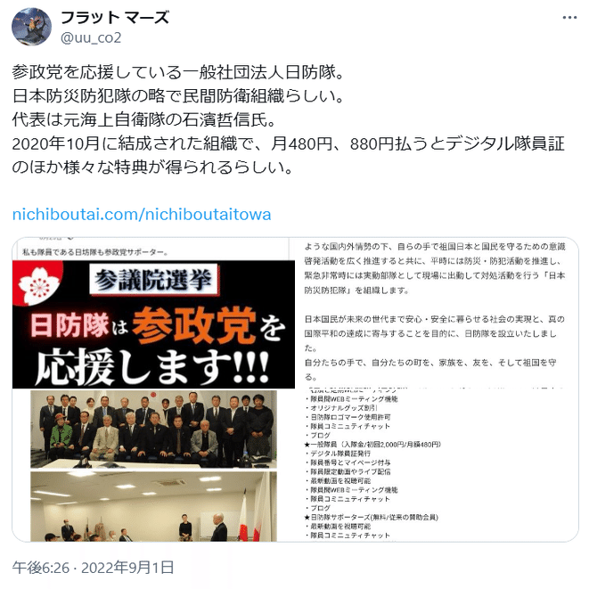 ⑩河合ゆうすけが所属する日本保守党(元祖)は、党首の石濱哲信が親ロシアで参政党支持(こちら)。