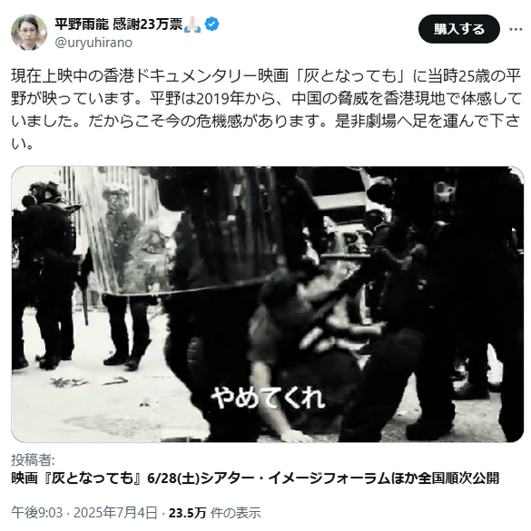 ③香港デモで催涙ガスを浴びて、日本でウイグル・ジェノサイド啓発活動やって、2025年参院選で寄付金を集めて勝負に出る、、、数奇な人生ですね。モンキー・D・ルフィみたい。