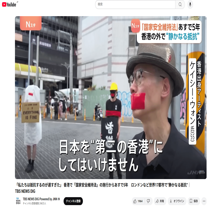 中国は軍事力を行使せずに香港から民主主義を取り上げています。無警戒なままでいるならば、日本も同じ道を辿るでしょう。
