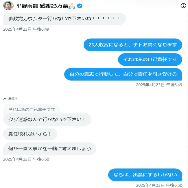 ③参政党支持者が平野雨龍支援グループに大量に入り込む事態となりました(こちら)。傍から見ていて異変が伝わるレベル。