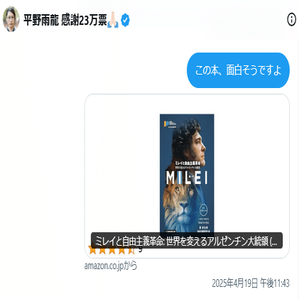 ①経済政策に関しては、ハビエル・ミレイを勧めていました。「日本人目覚めろ」というならば、日本の課題をストレートにぶつけるべきですよね。