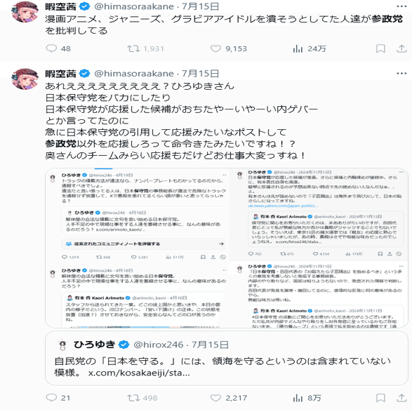 ②暇空茜、妙に参政党を庇うんですよね。