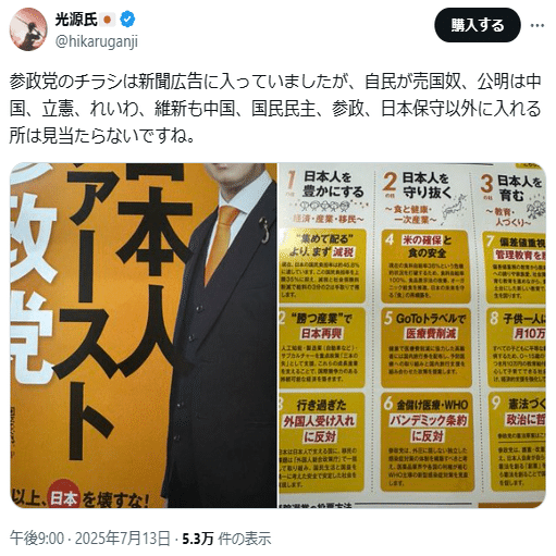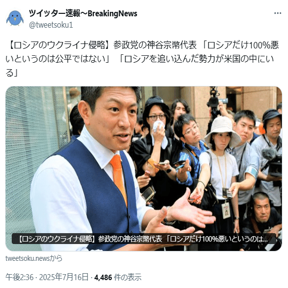 ロシアがSNSを通じてデマ/陰謀論を拡散させ、それに引っ掛かった人達を参政党が吸い寄せる、という動きは定番です。今回も、ロシアがSNSを通じて「外国人優遇デマ」を撒き散らし、参政党が「日本人ファースト」を掲げてデマに引っ掛かった人をおびき寄せました。