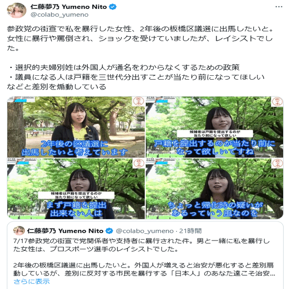 ⑤当然、本人もターゲットになっていることを意識している(こちら)。それでも街宣を続けたのは、立派。