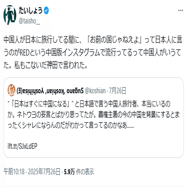 中国人は日本を乗っ取る気で浸透してきている、と認識するべき。