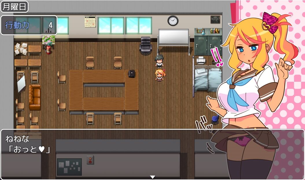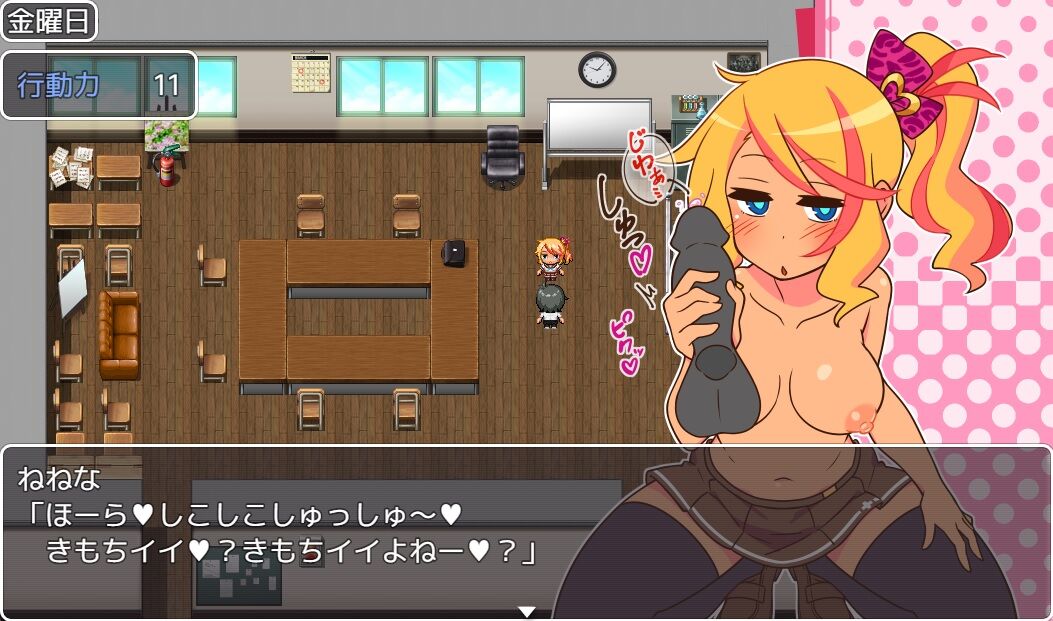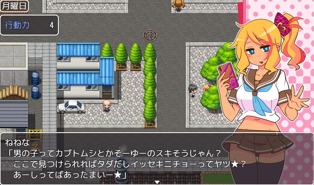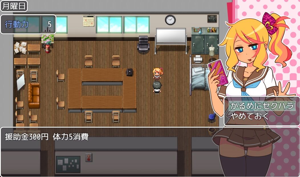 アルバイトでお金を稼ぎ、援交してエッチな姿を拝み、そしてそれをおかずにシコる。この流れだけでストーリーが遊べる簡単RPG。