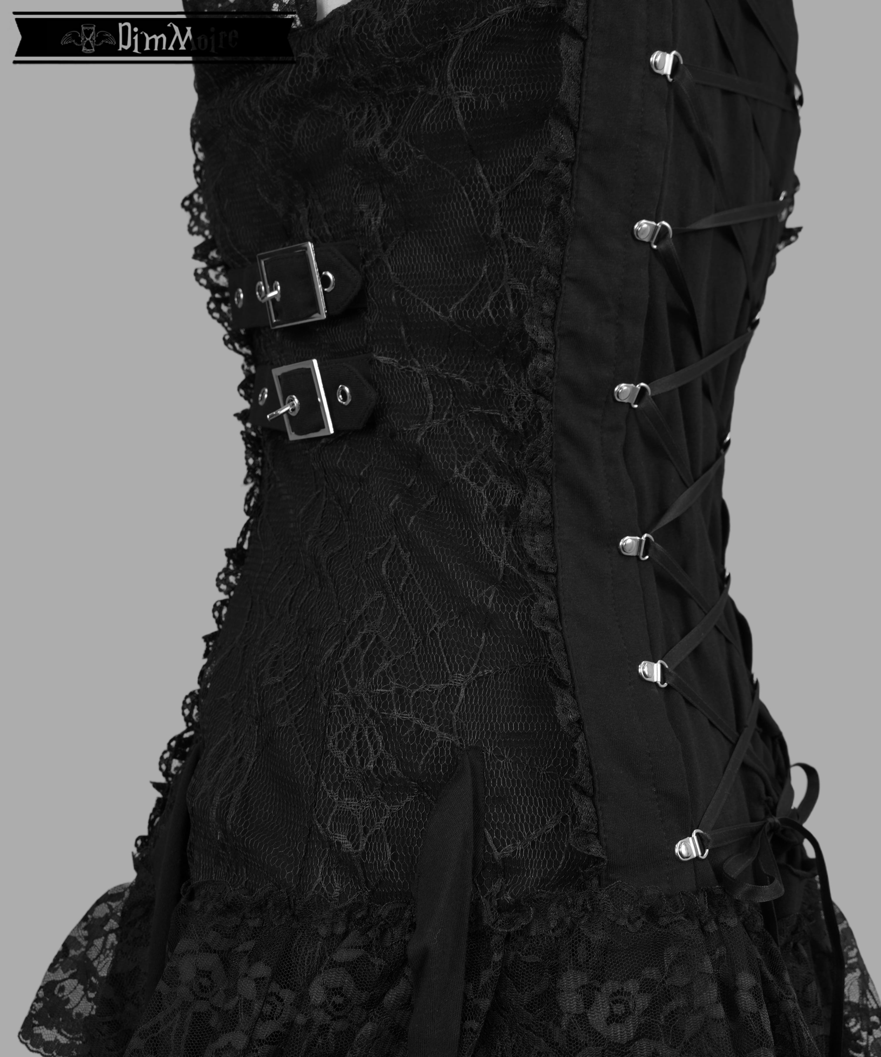 裾にかけて重なるレースと垂れたリボンは、退廃的でありながらも儚く、揺れるたびに幽かな気配を漂わせます.