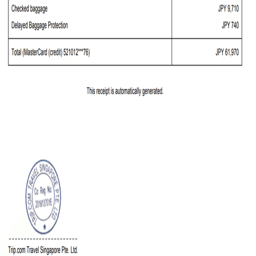 往復の荷物預け入れスーツケース(20kg未満)→9710円荷物の紛失や遅延による補償(万が一)→740円⇒合計10450円