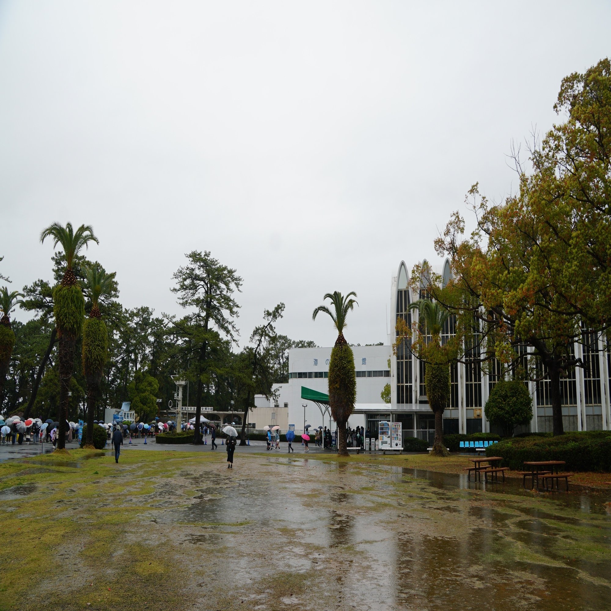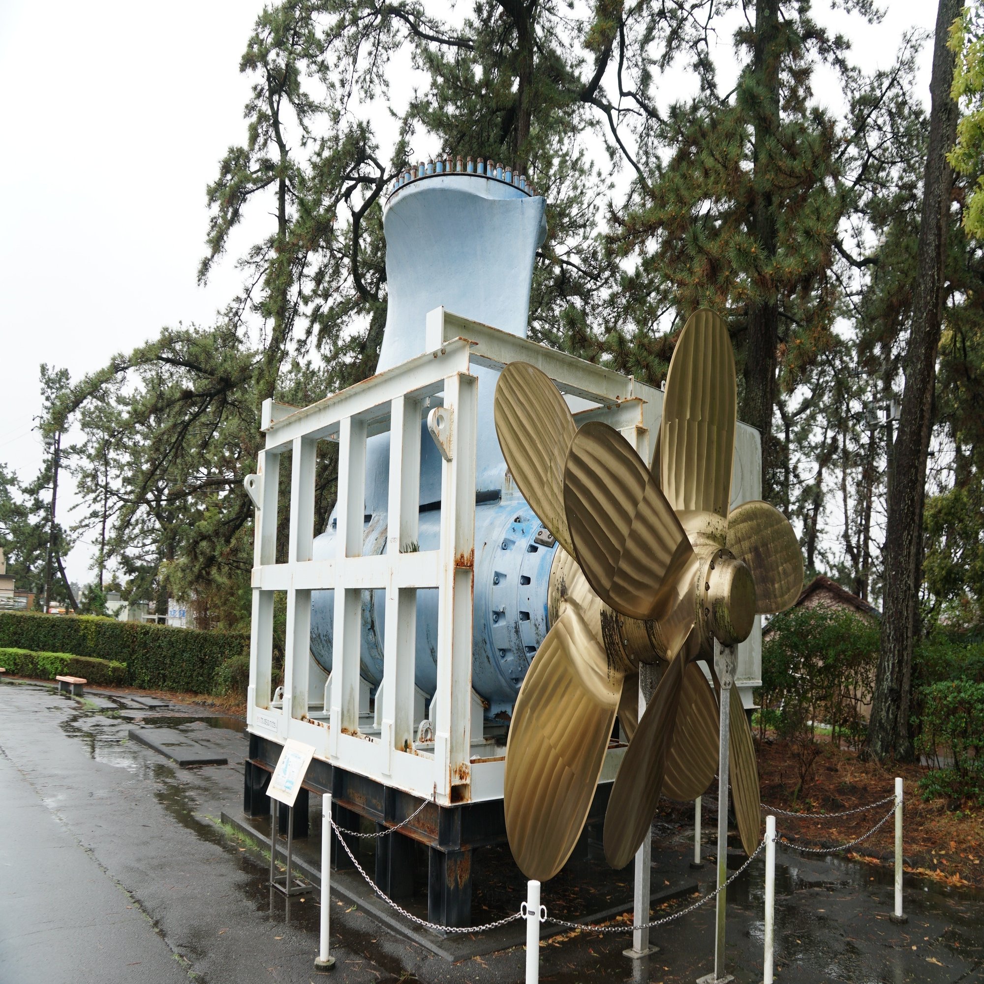 当日はあいにくの雨でした。2つの博物館がある敷地内には海に関する大型展示物があり、以前は実物の調査船も置いてありました。