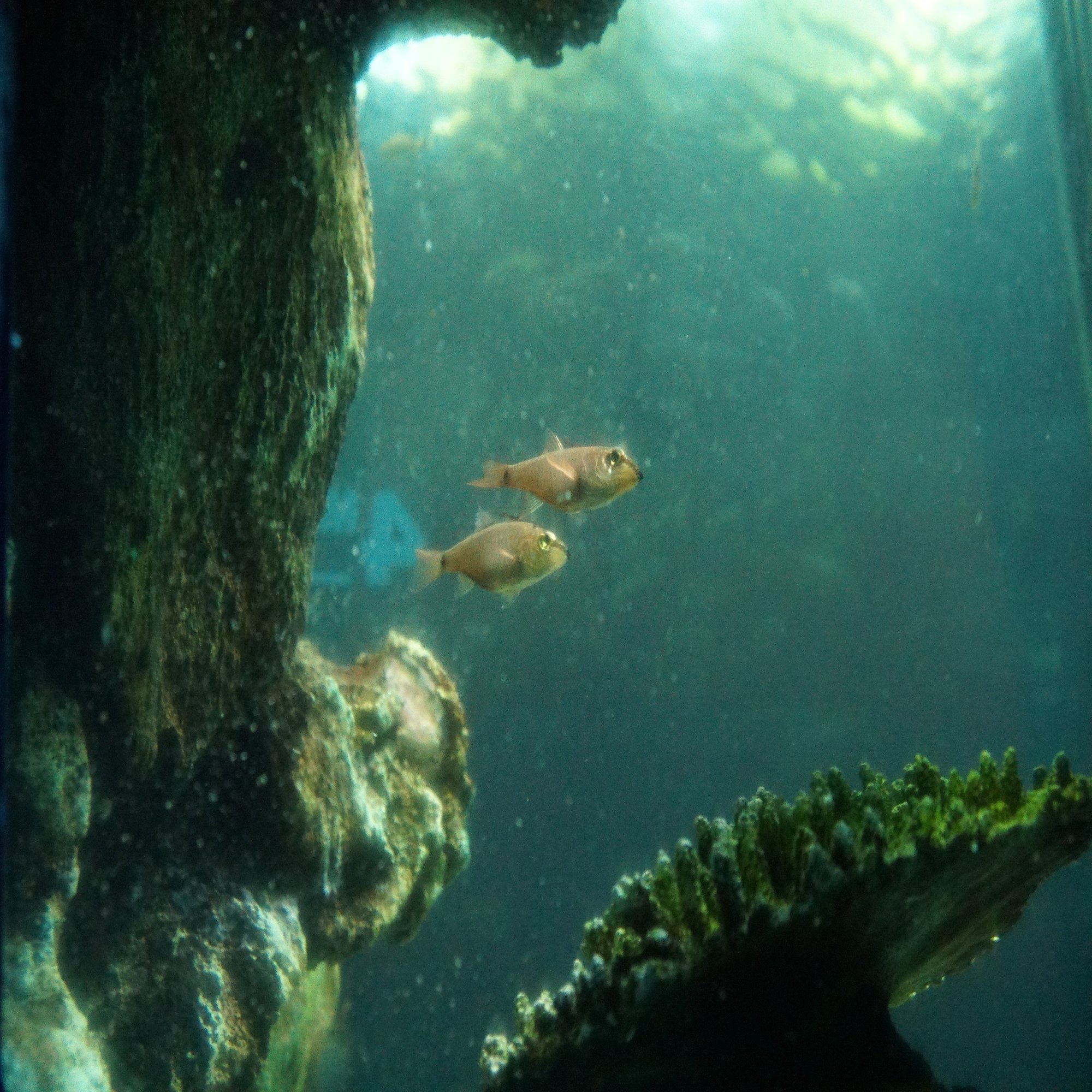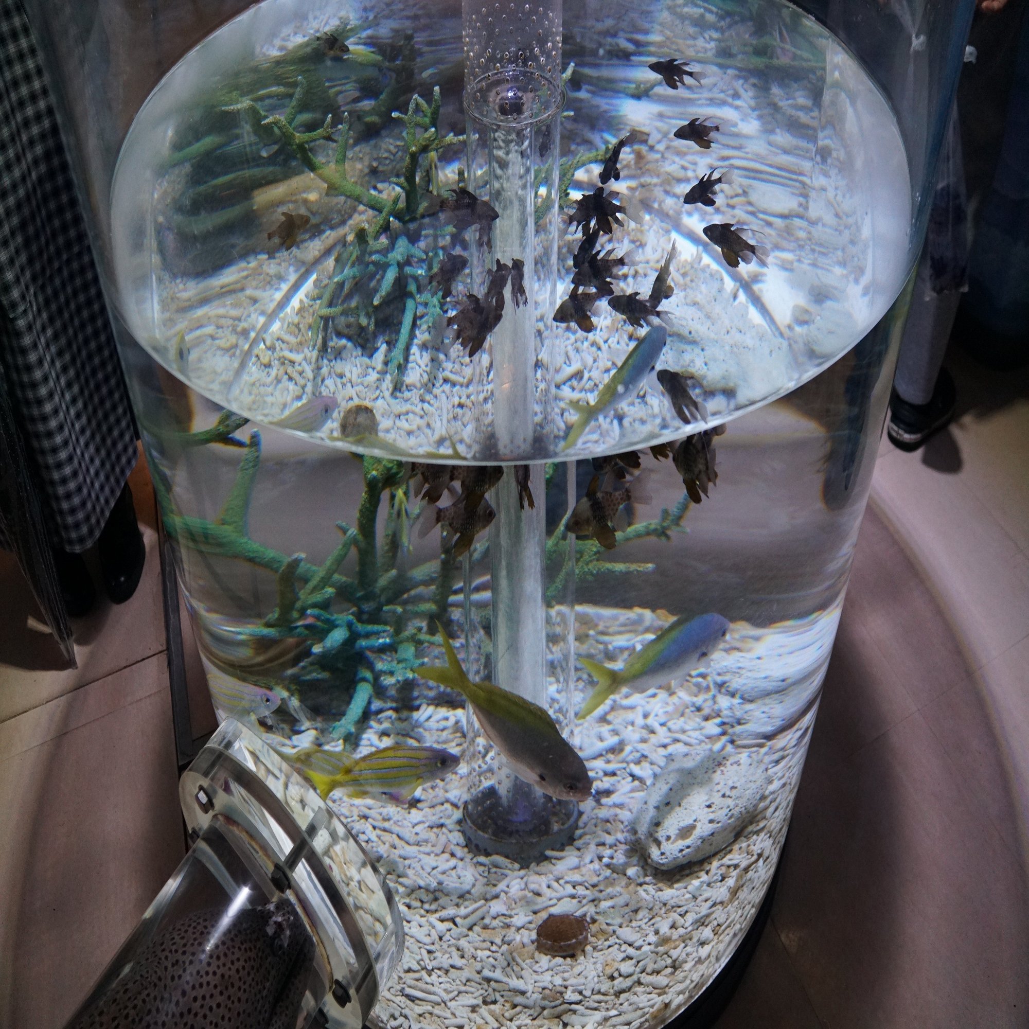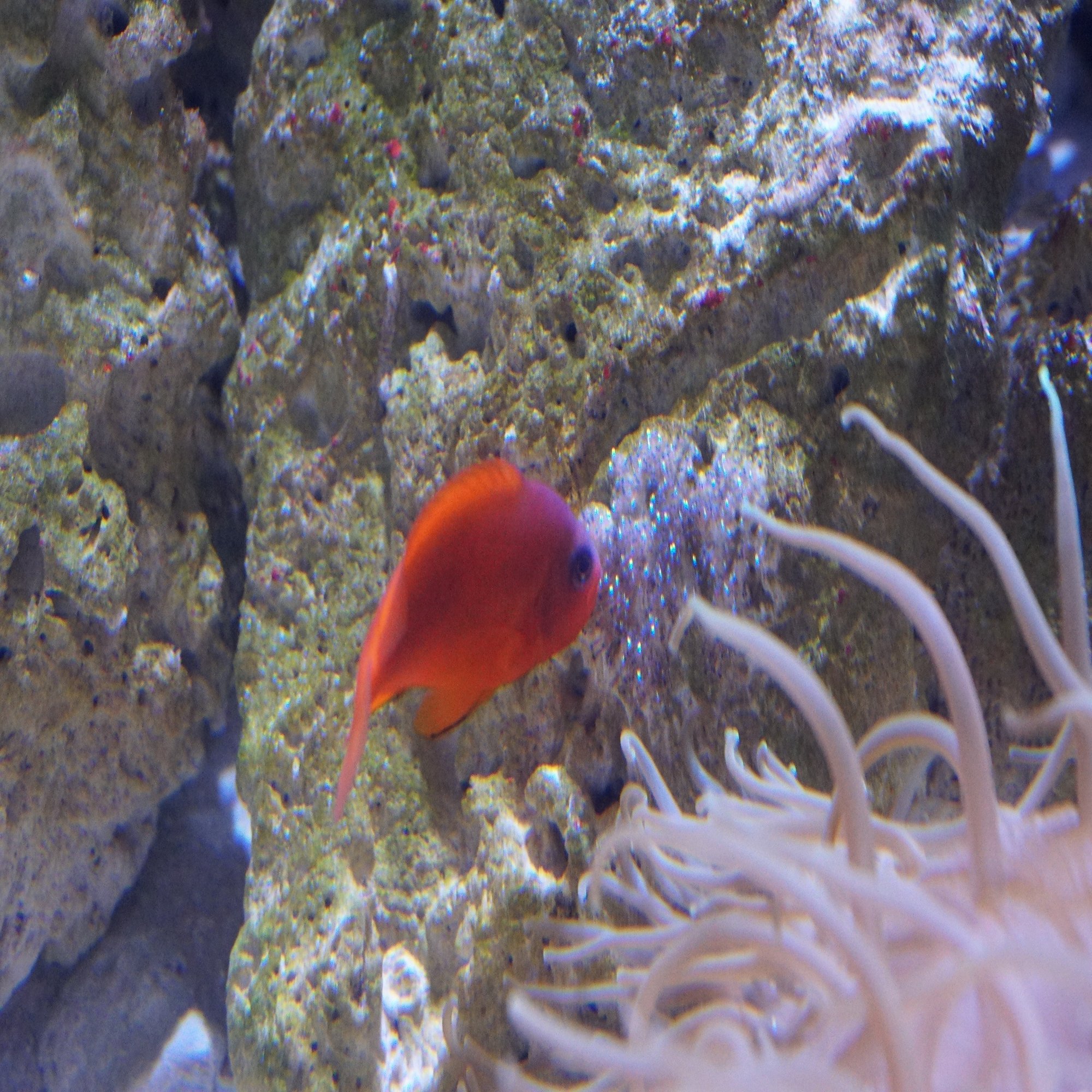 しかもそれは岩によって巧妙に隠された海底トンネルの天井に備えられた覗き窓で、さらに詳しく見ることができるのです。こんな小さな魚が設立当時アジア一だった巨大水槽に潜んでいるのです。