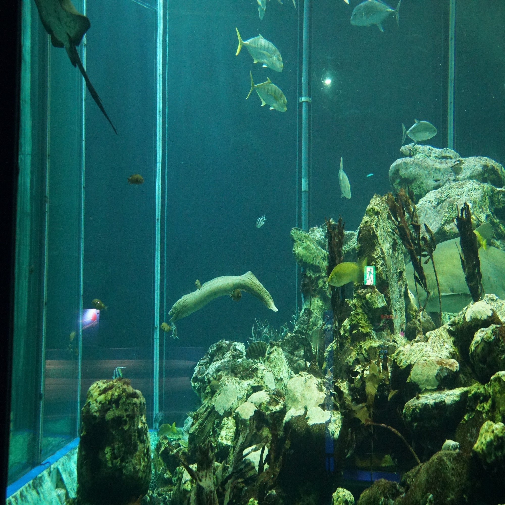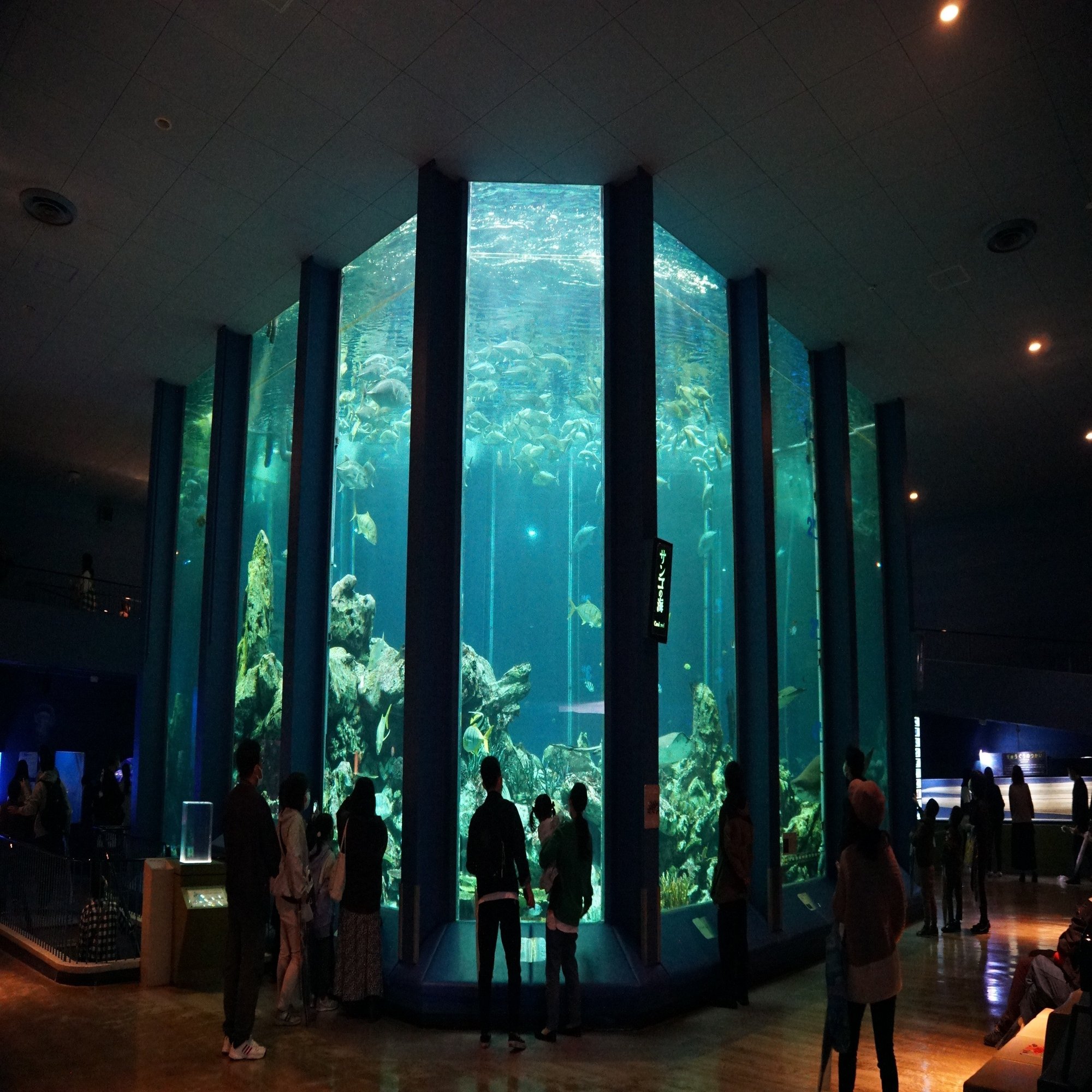 東海大学海洋科学博物館といえばなんといってもこの角柱型の大型水槽です。できた当時はアジアで一番の巨大水槽だったそうです。