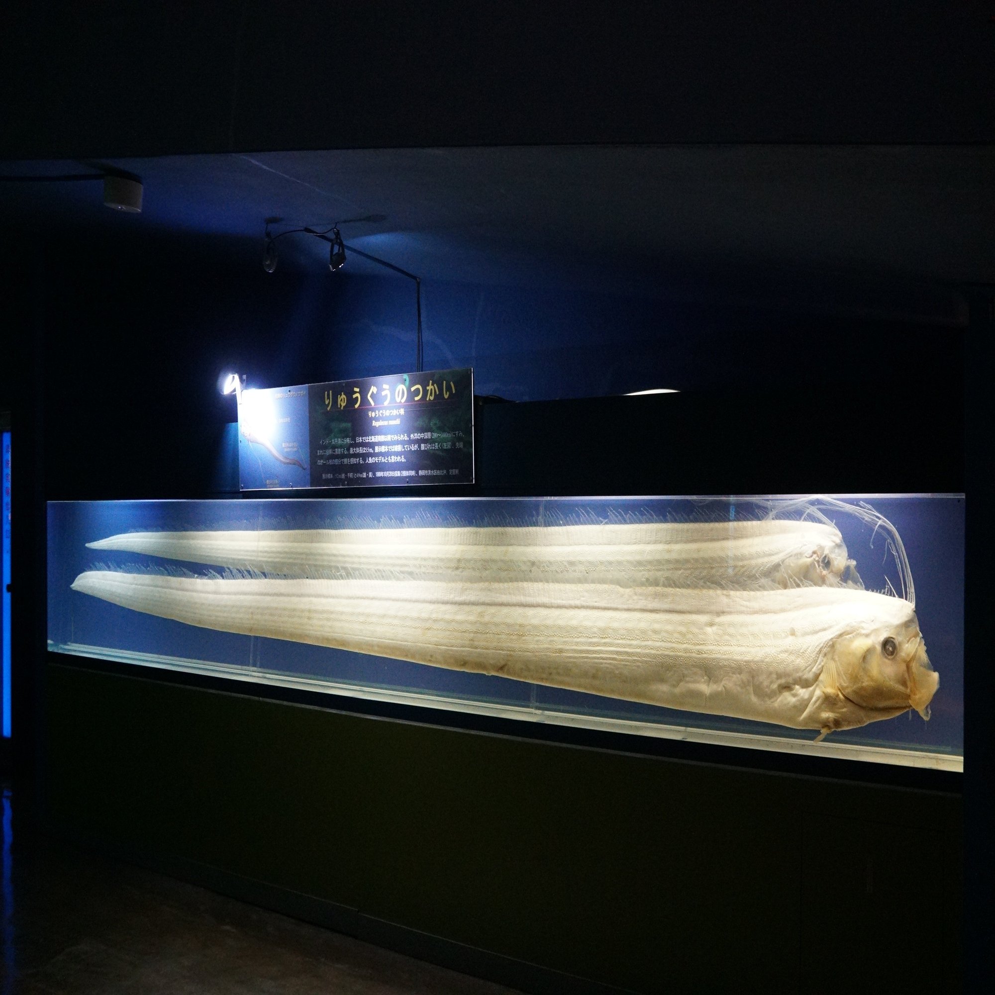 最も目を引くのがこの5メートルほどもある雌雄のリュウグウノツカイの標本と、
