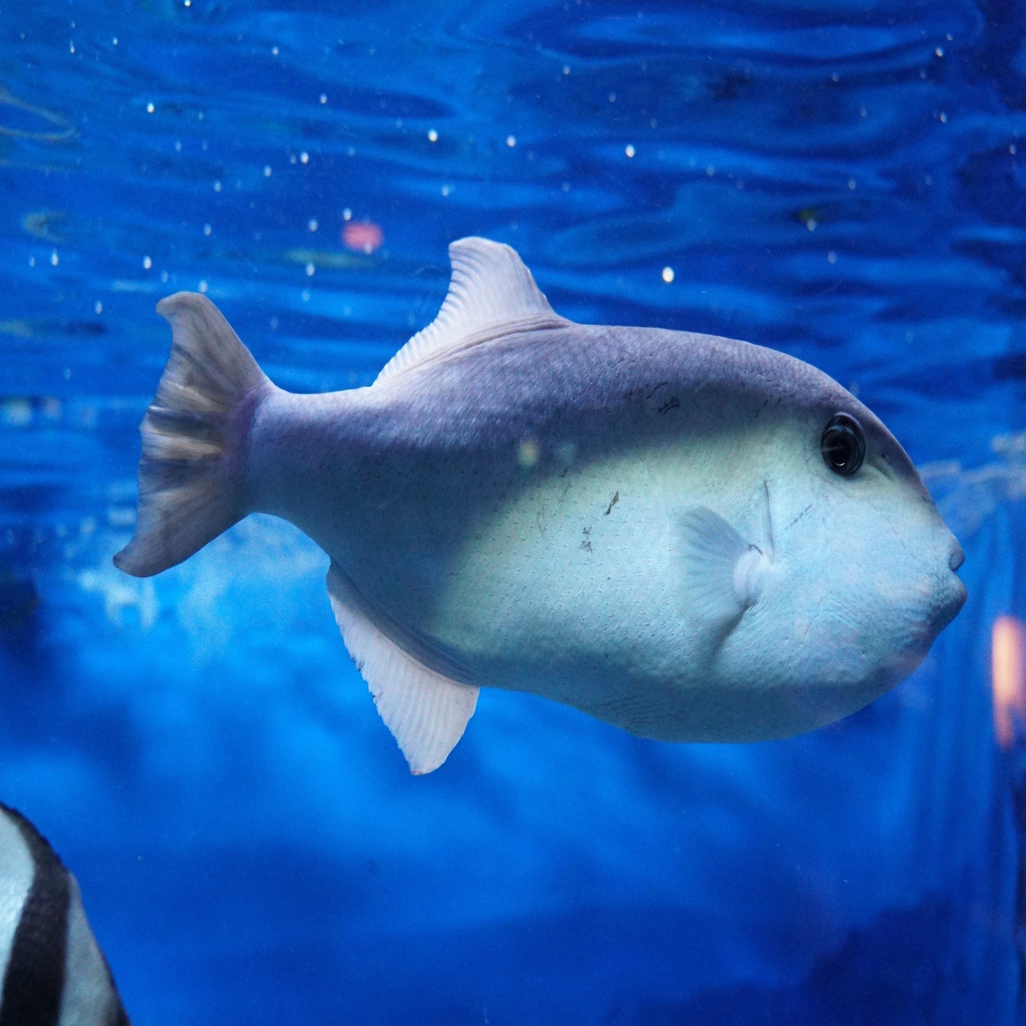おや、アミモンガラ。顔付きと泳ぎかたがマンボウによく似ていて、マンボウがフグの仲間であることを実感させてくれる魚です。