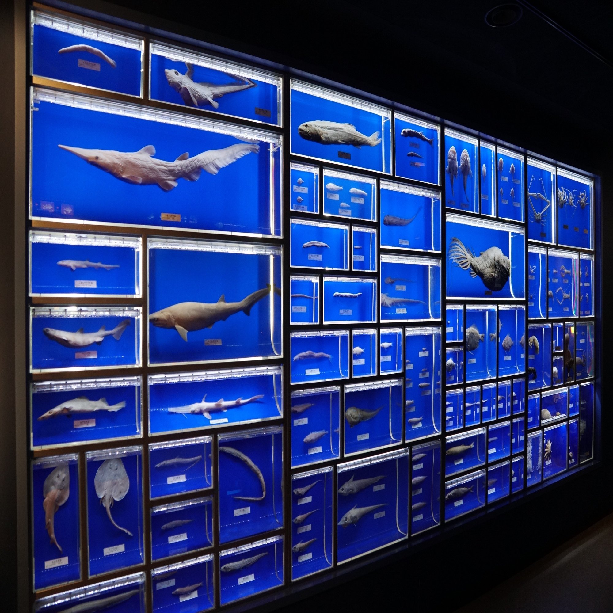 深海の生き物に興味があればここから離れられなくなるすさまじい展示です。海洋科学博物館は水族館部分のみの公開にはなっていますが、ここはしっかり博物館しています。