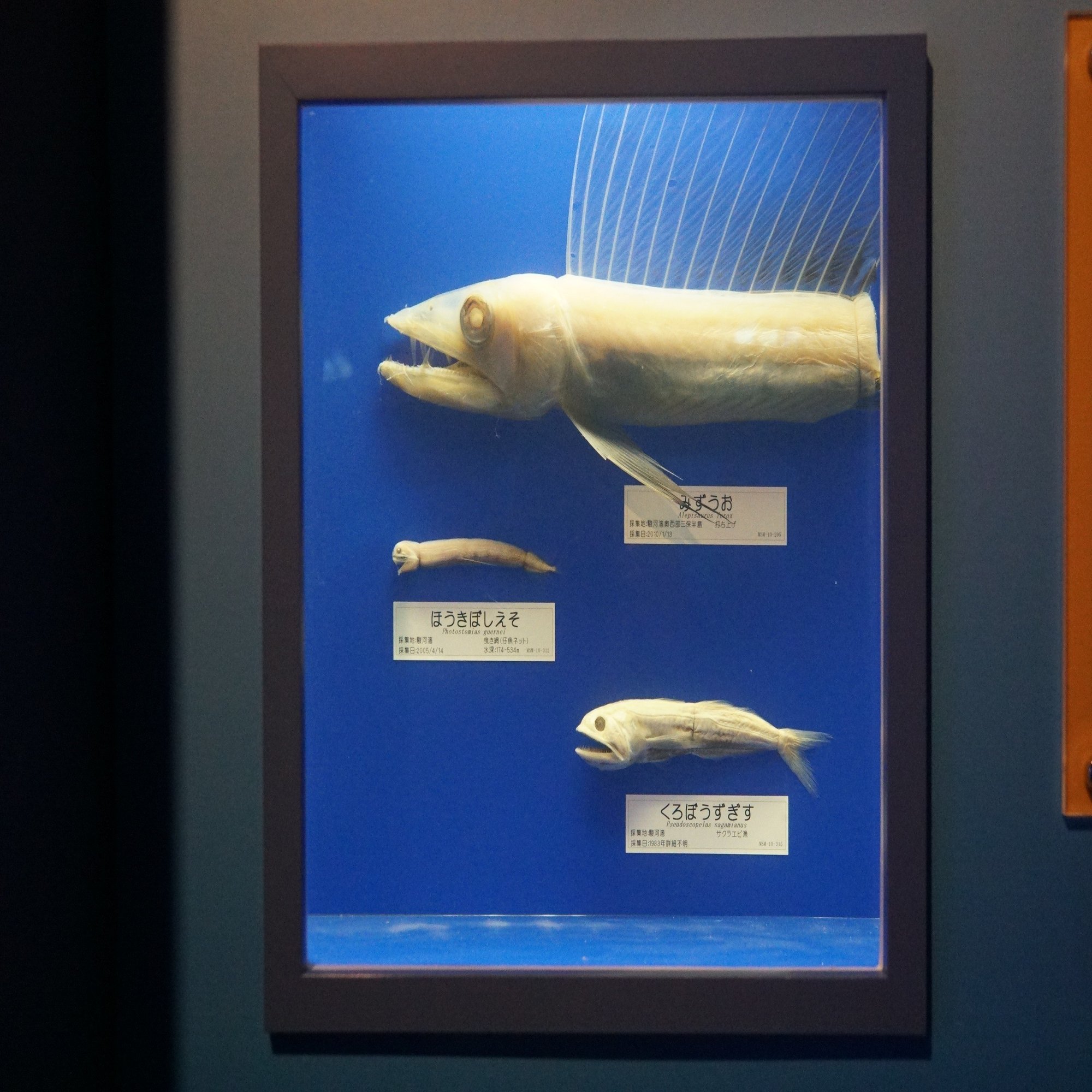 なぜ繊細な深海魚であるリュウグウノツカイの標本がここにこんなに綺麗に揃ったのか?それはすぐ近くの駿河湾が非常に深く、深海生物の一大生息地であるからです。