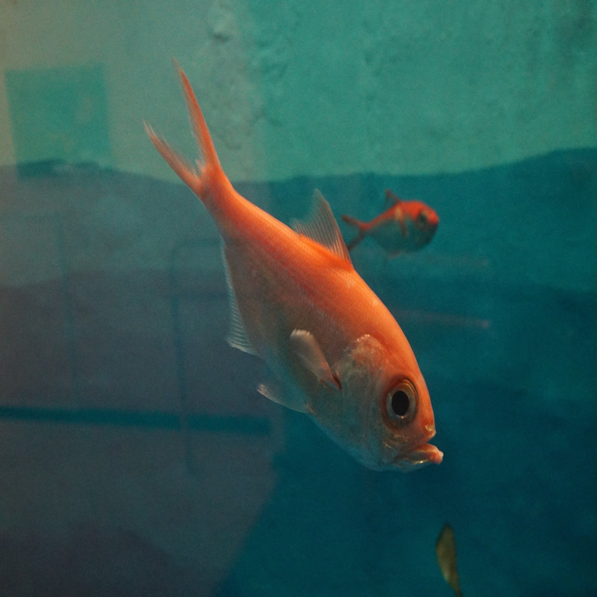 生体も次第に深いところのものに移り変わり、名物でもあるキンメダイで汽車窓式水槽は終わります。