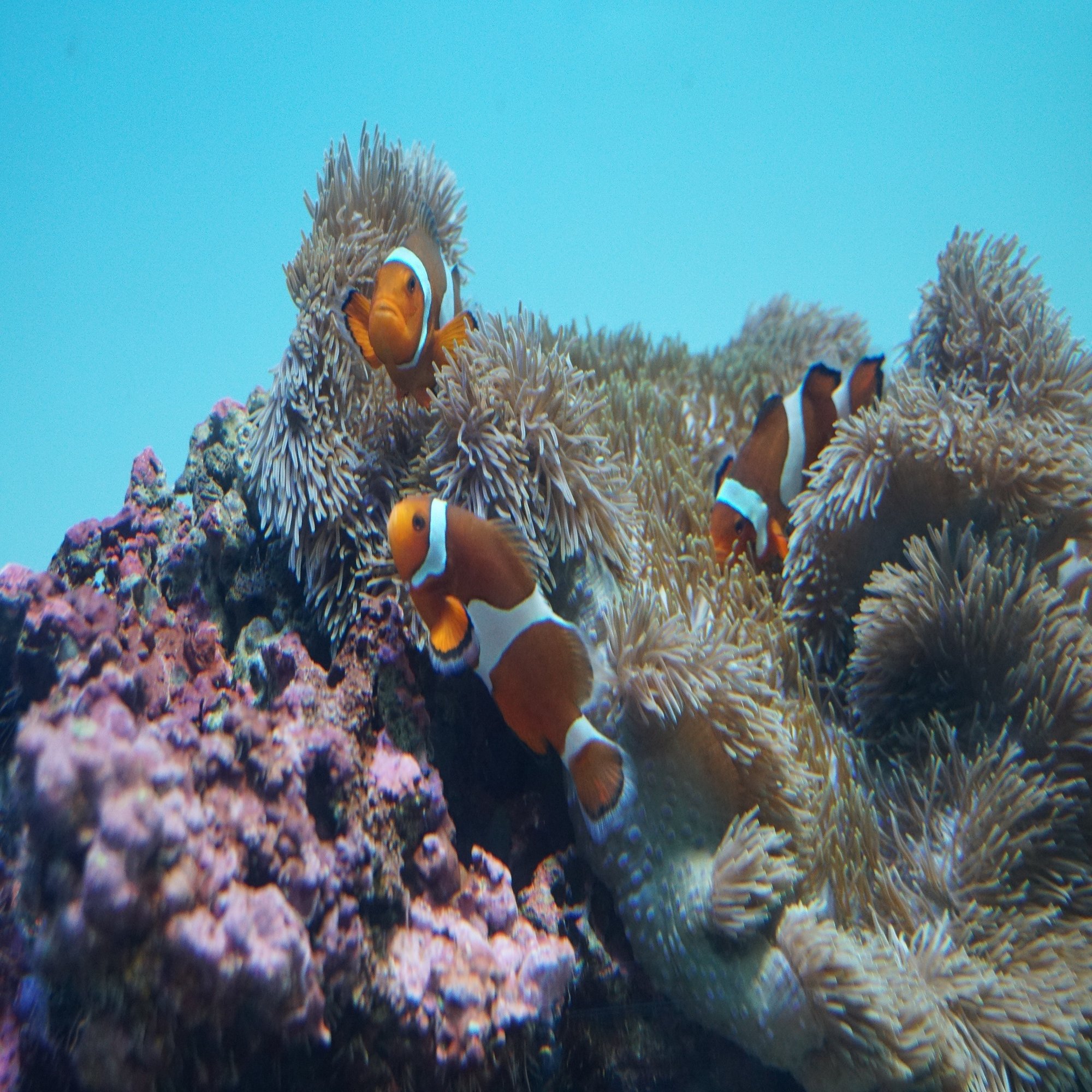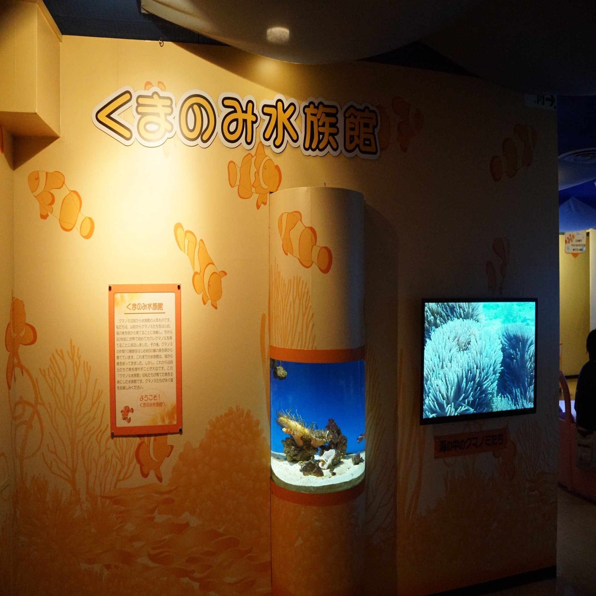 可愛らしいクマノミに出迎えられますが、こうして生態どおりイソギンチャクに潜っていることからも分かるように展示内容は堅実そのものです。