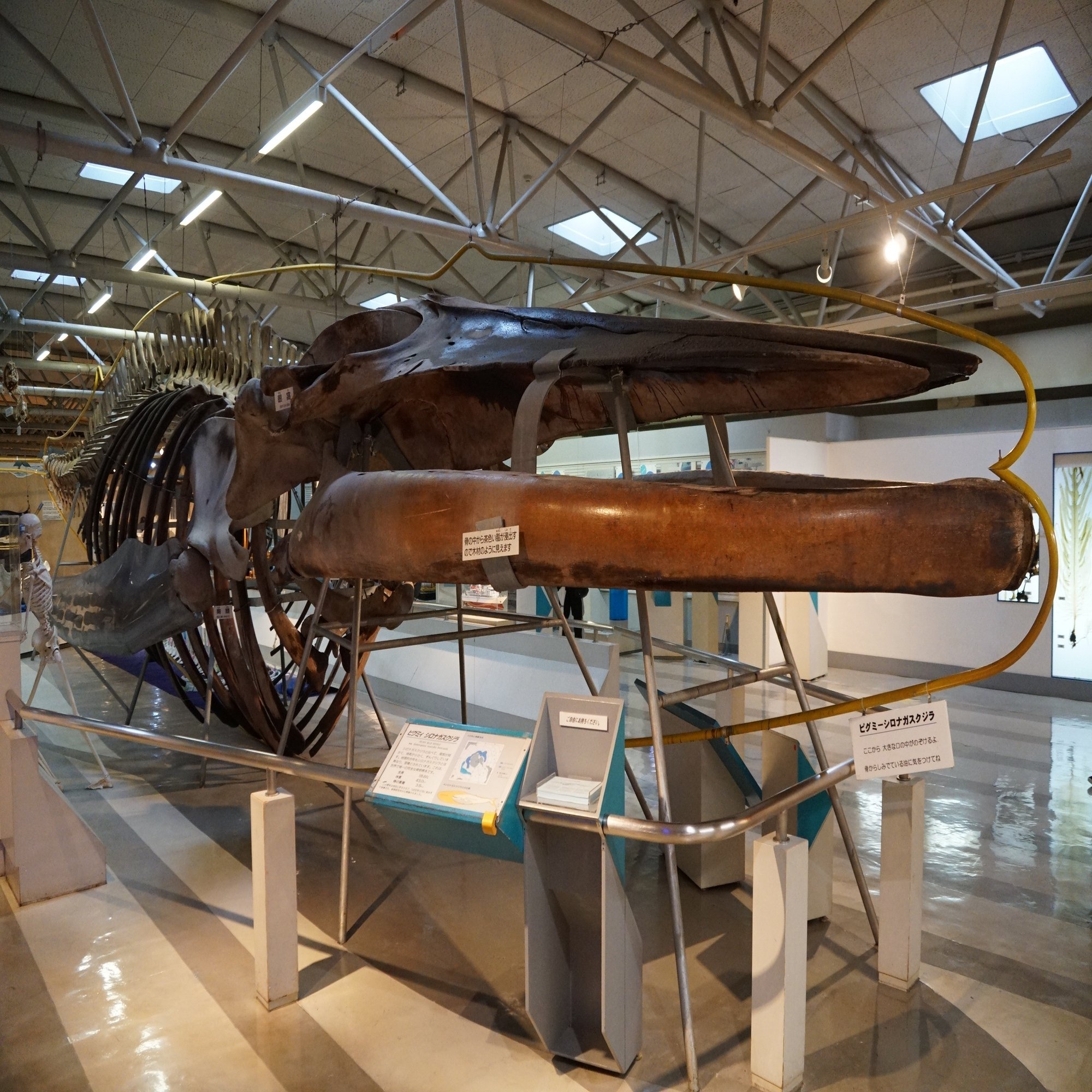 1階の象徴は大水槽でしたが、2階の象徴はこのピグミーシロナガスクジラ(シロナガスクジラの小型の亜種)の骨格です!