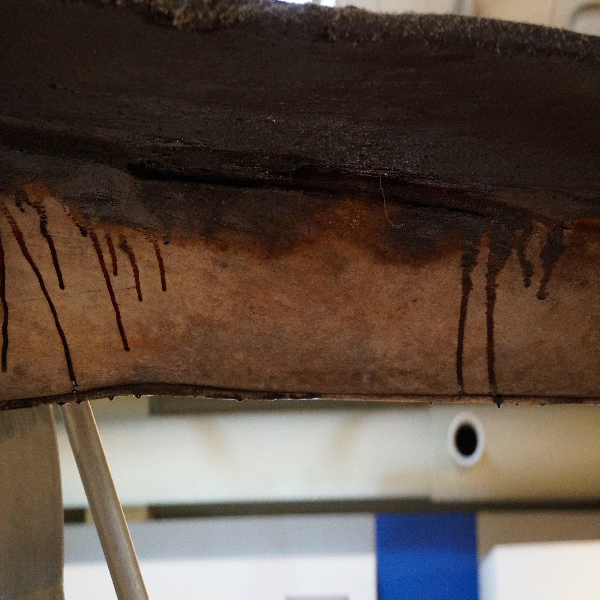 まるで木材のように見えるのは脂抜きが完全でないためですが、今でも上顎の裏にしみ出した脂の筋が見えます。骨が動物の肉体の一部であることをまざまざと見せつけてくれた標本でした。