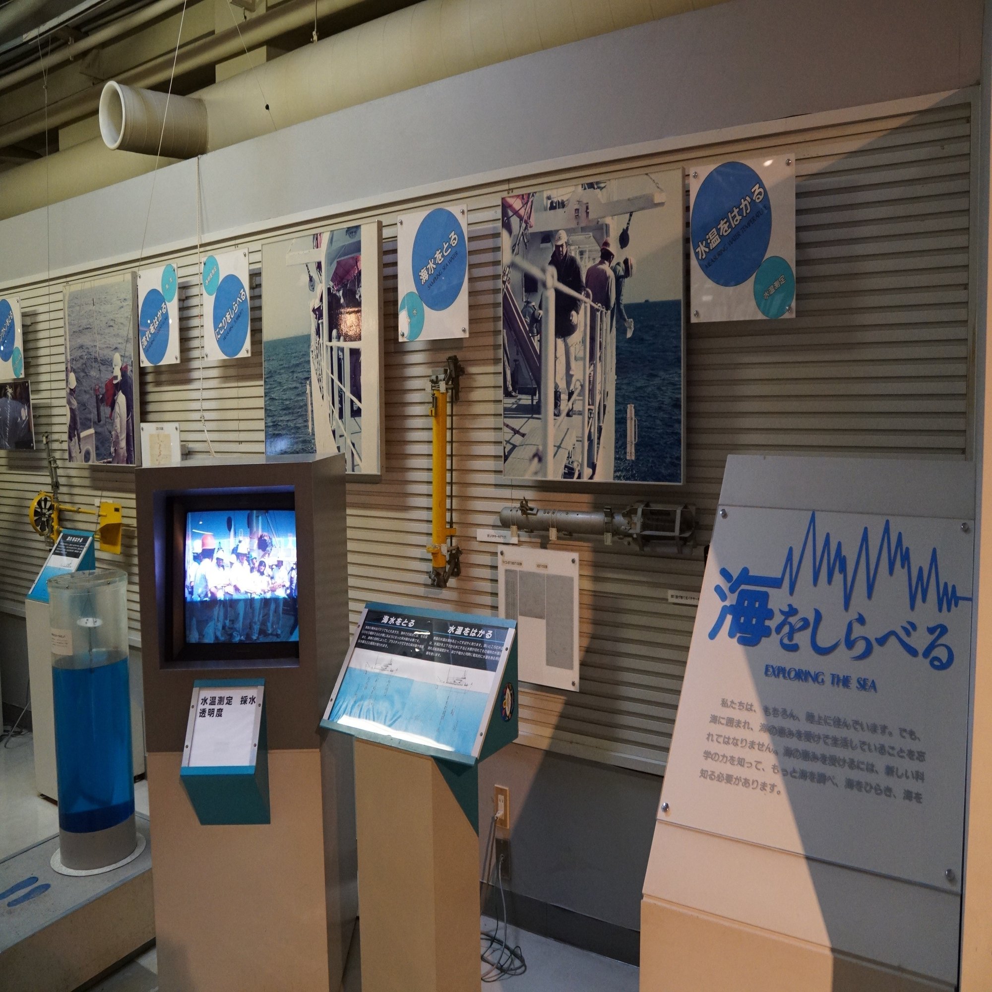 2階に辿り着くと、いかにも懐かしの科学館という感じのシャープな空間でした。波や潮流、水圧や水温の展示から始まります。