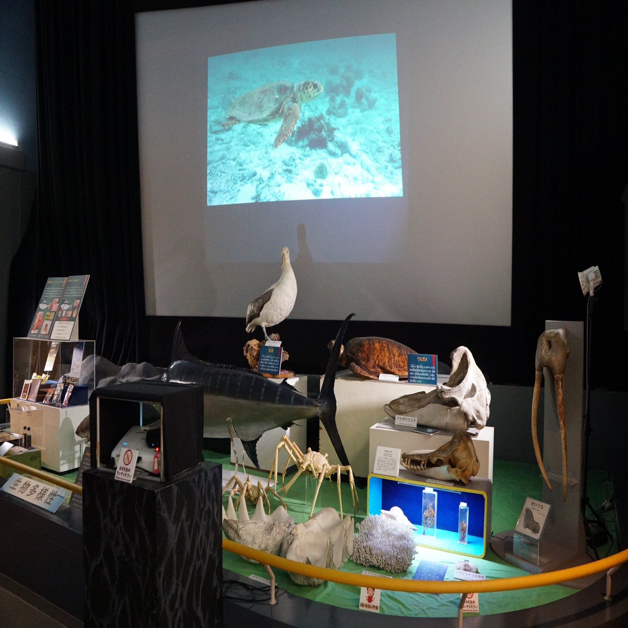 シアターだったところは海の環境保全を啓発する展示室に変わっていました。他の場所に展示されていた標本が集まっています。