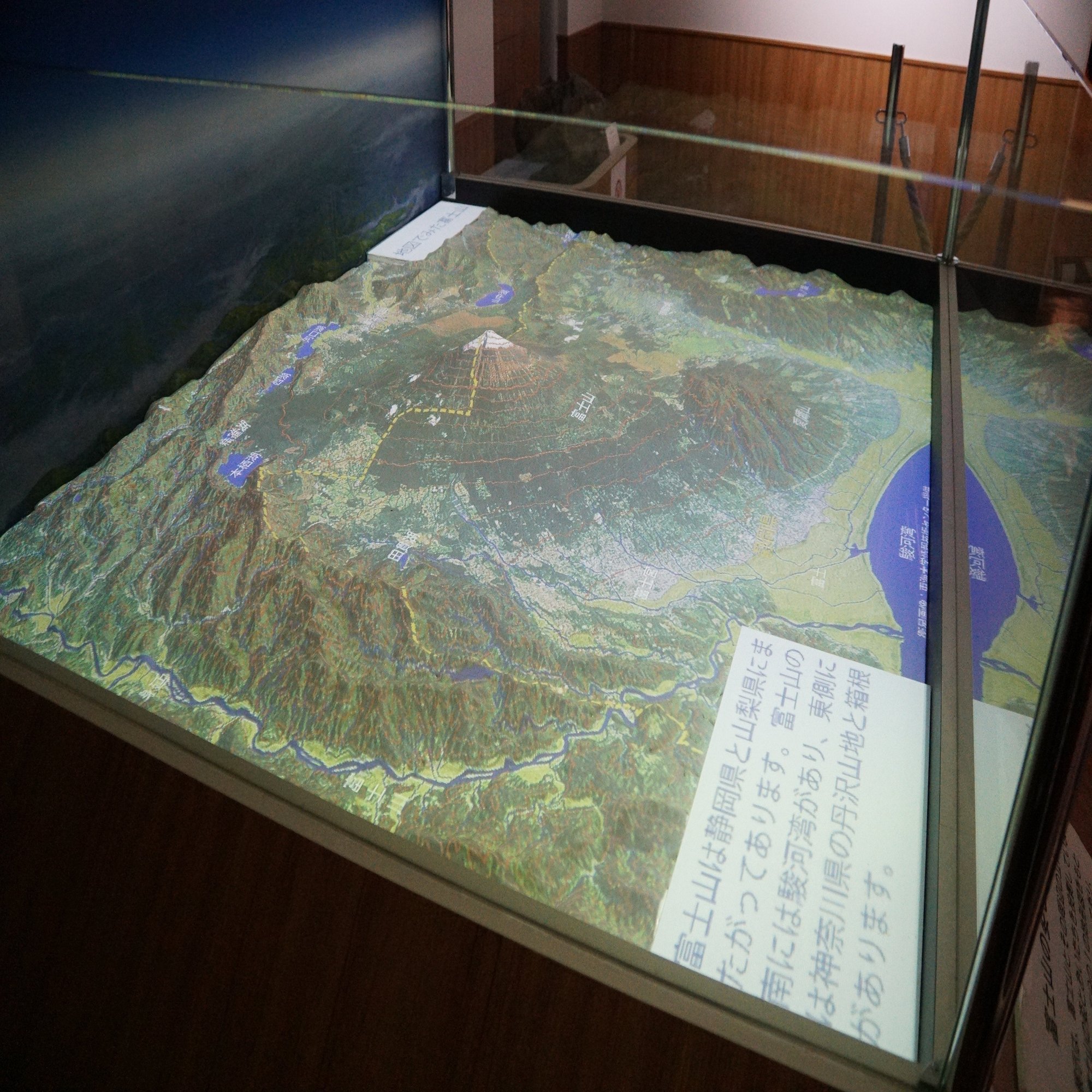 本来の順路では最後になるのですが、先に海の自然を見ていたので静岡全体の自然を見ていきます。これは富士山周辺の模型に様々な情報を投影する展示です。