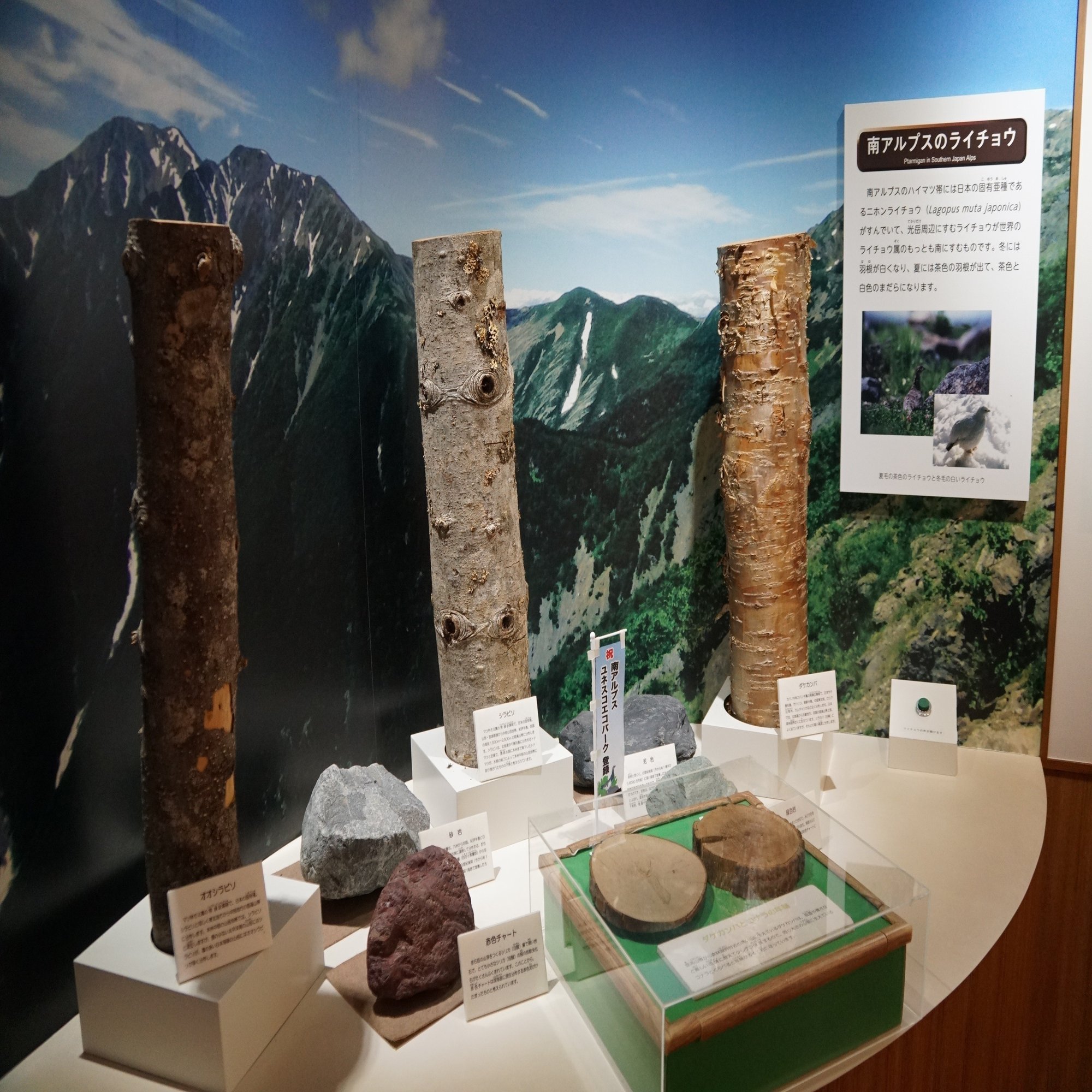 南アルプスから雑木林、里山、川と巡っていきます。そういえば海洋科学博物館には淡水魚が本当に1種類もいないのでした。