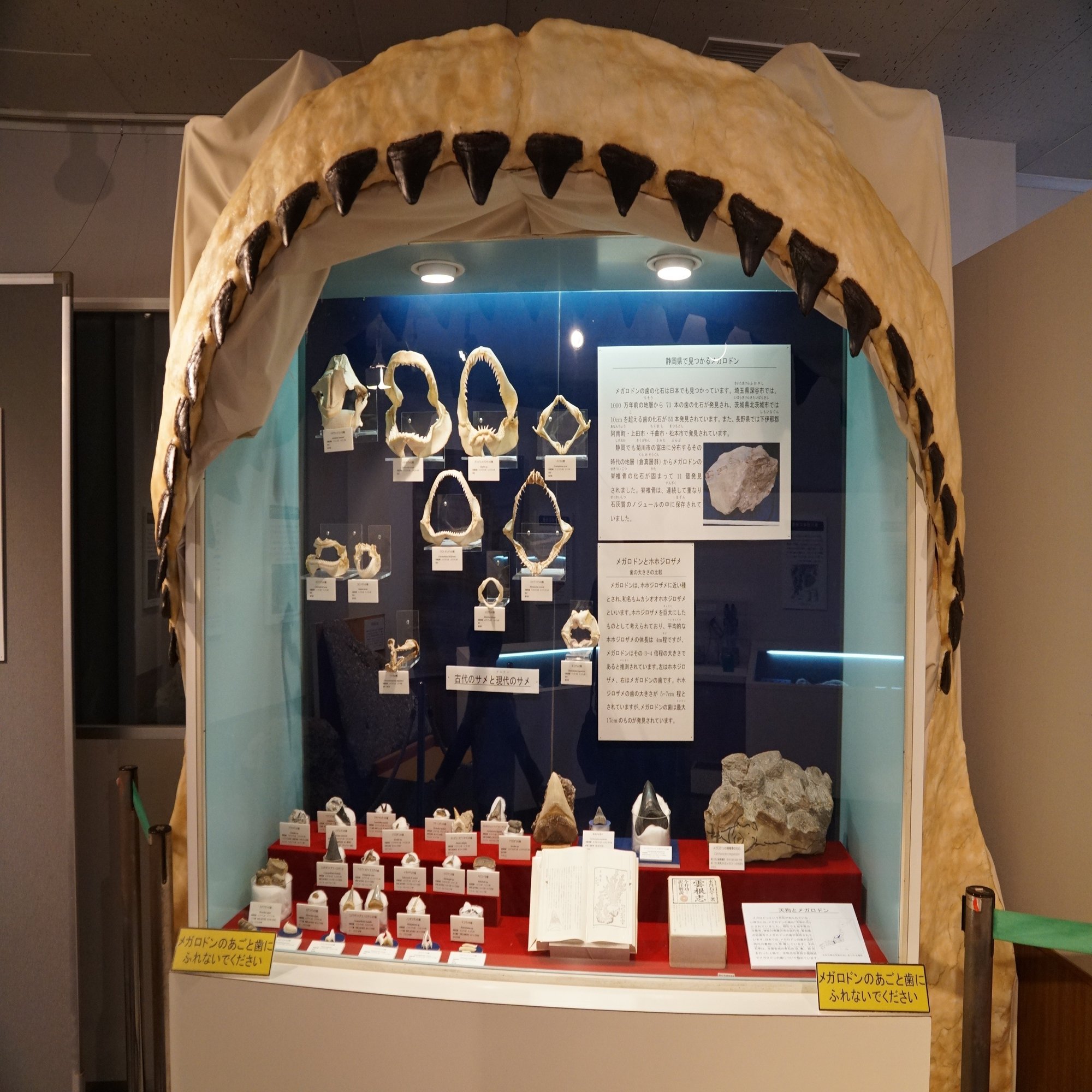 ああ、これは海の展示ですね。現生と化石の様々な軟骨魚類の歯の展示です。以前私が見学したより後にまとめられた展示です。