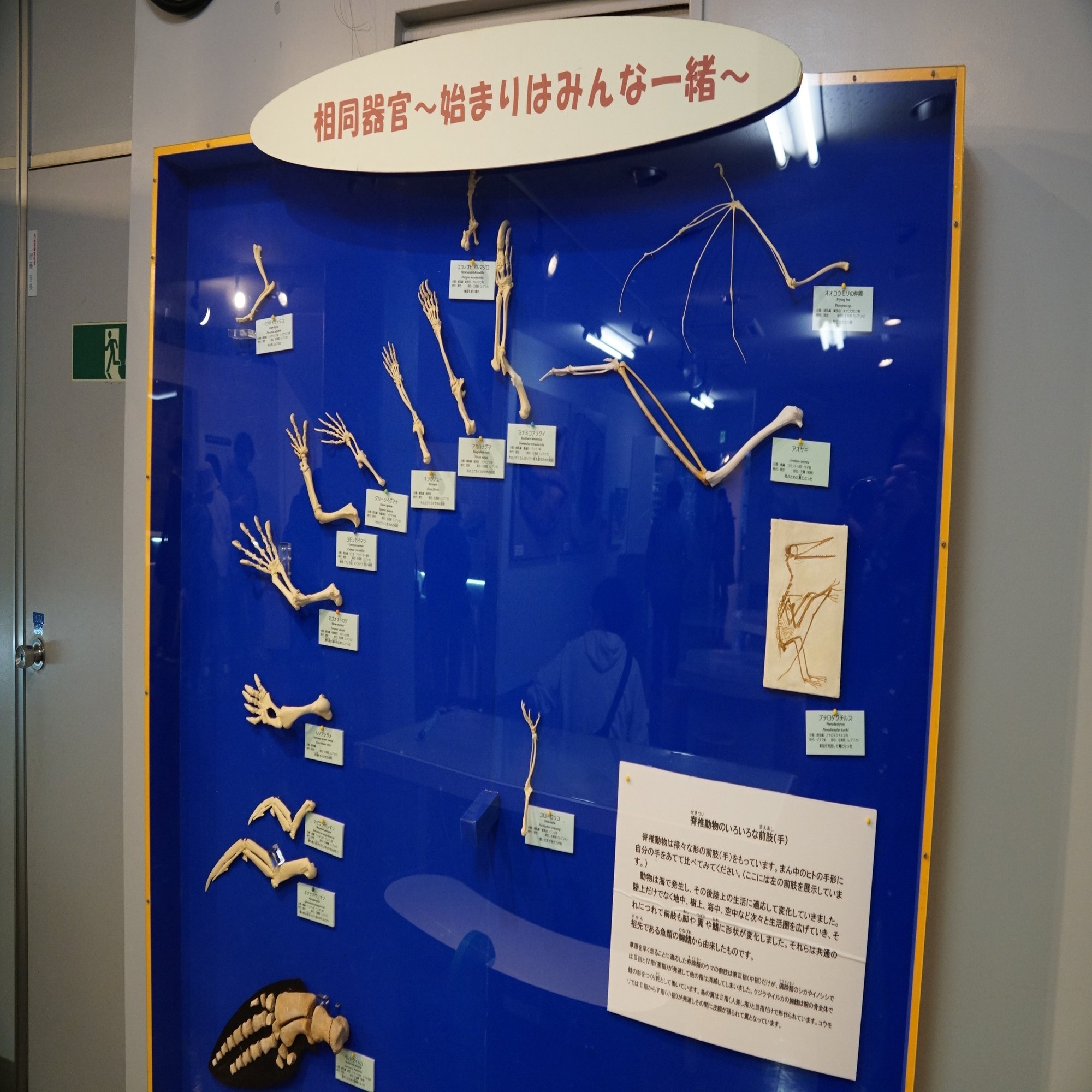 様々な四足動物の前肢の比較です。かなり発見のある展示でした。