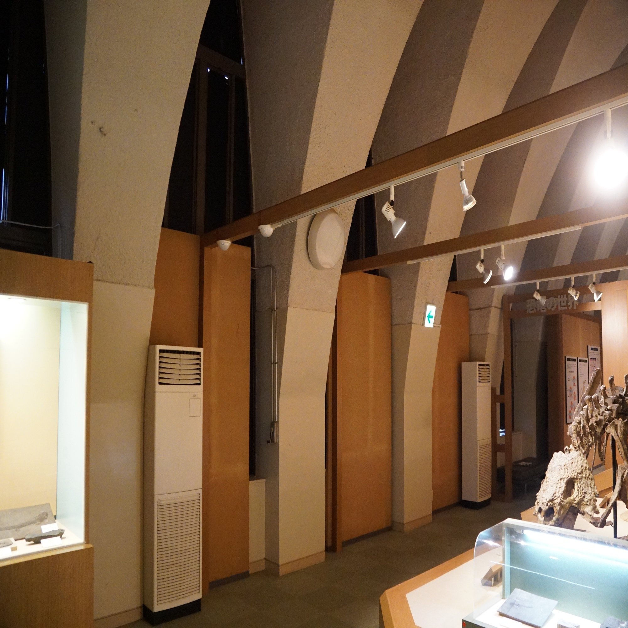 ……「以前」どういうレイアウトだったか全く想像が付きませんが、この連なったアーチも恐竜のではなくヒトの肋骨に見立てられていたのでしょうか。骨だけなら平気は平気なんですけれども。