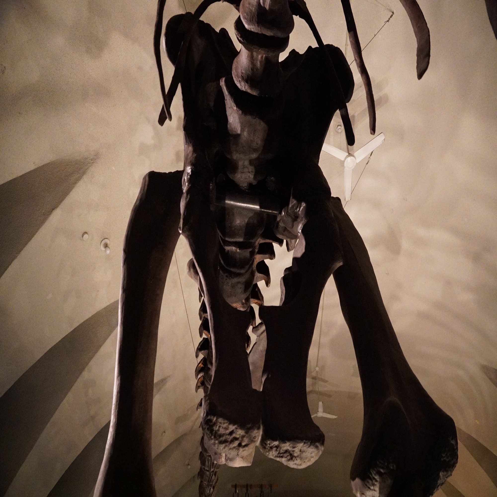 ディプロドクスの腹の下に入ることができます。骨盤も手足もよく観察することができます。ますますこの天井に覆われた空間にぴったりですね。