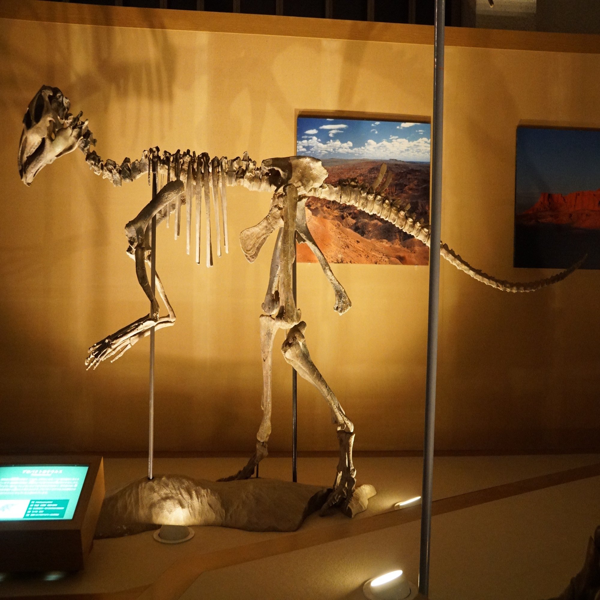 おっと、組み立て骨格はプロトケラトプスもありました。この周りには恐竜の卵に関する展示が並んでいました。しかし元々プロトケラトプスのものだと考えられていた卵はむしろ卵を盗みに現れたと考えられていたオヴィラプトル類のものだと考えられるようになり、ここでも解説がそのように書き換えられました。その他にも恐竜の卵の研究はどんどん進んでいます。