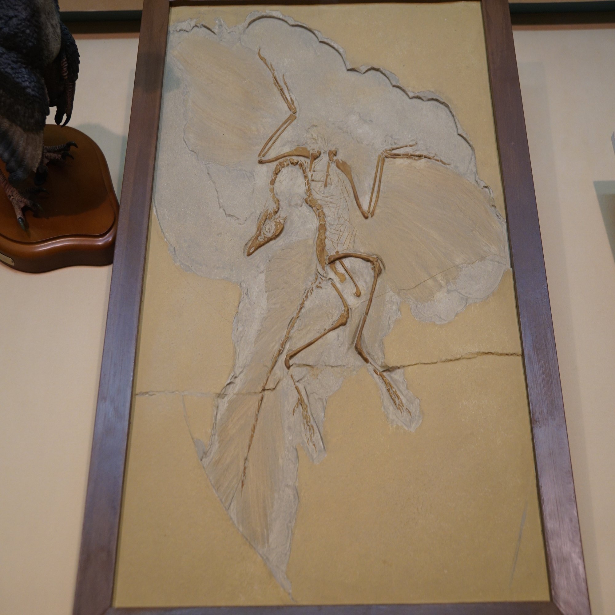 私(始祖鳥)です。鳥が恐竜の子孫(今だと生き残りって言いますね)であることを示し、恐竜のホールは終わります。