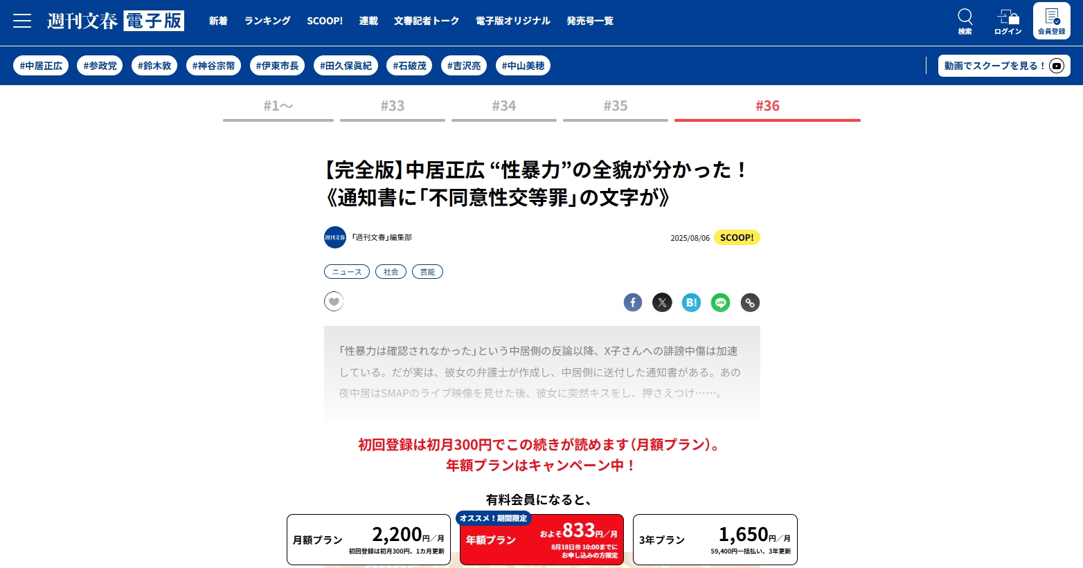 【文春】中居正広 “性暴力”の全貌が分かった!SMAPのライブ映像を見せた後、突然キスをし…《通知書に「不同意性交等罪」の文字が》★15 [Ailuropoda melanoleuca★]- 【悲報】石破首相「神から与えられた首相という使命を、とにかく果たしたい」