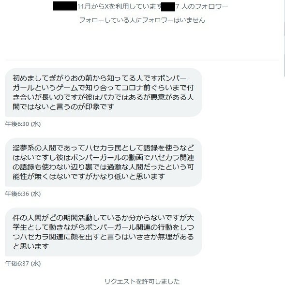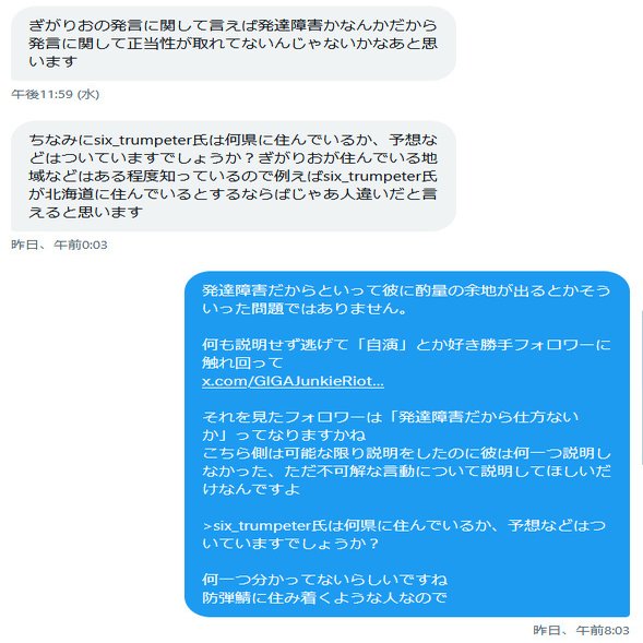 ぎがりお氏の4~5年来の友人からDMが来ていました。