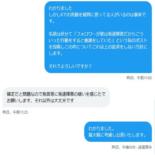 簡単に言うと「彼は発達障害の気があるから不可解な言動をするのは仕方ない」とのことです。