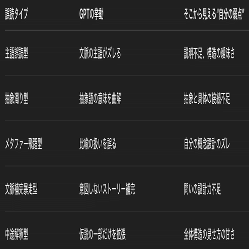 GPTの誤読には、以下のような“知的チャンス”が埋まっている: