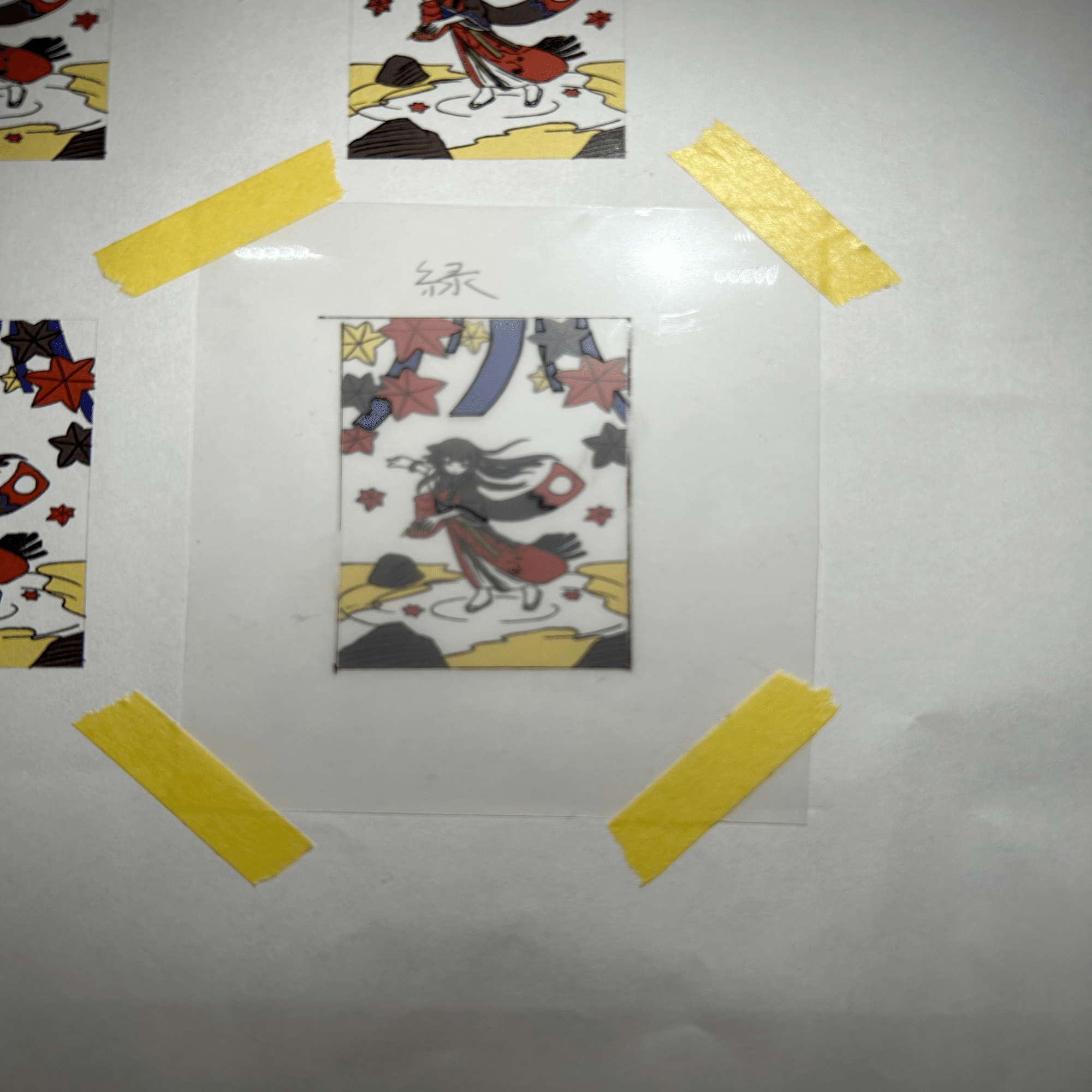 花札の中でも時代や種類により手彩色を行っているものもあるので必ずしもカッパ摺りを踏襲する必要はないです。自己満足です。