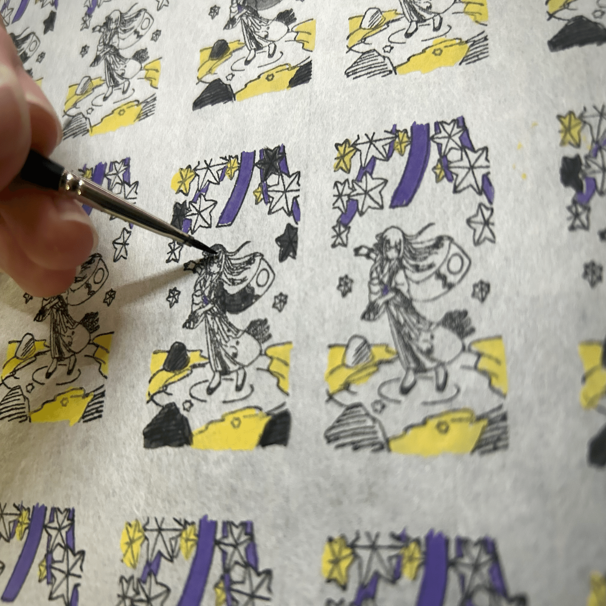 今回の制作方法で彩色がズレている理由は純粋な自分の技量不足と、紙の特性による色にじみによるものです。