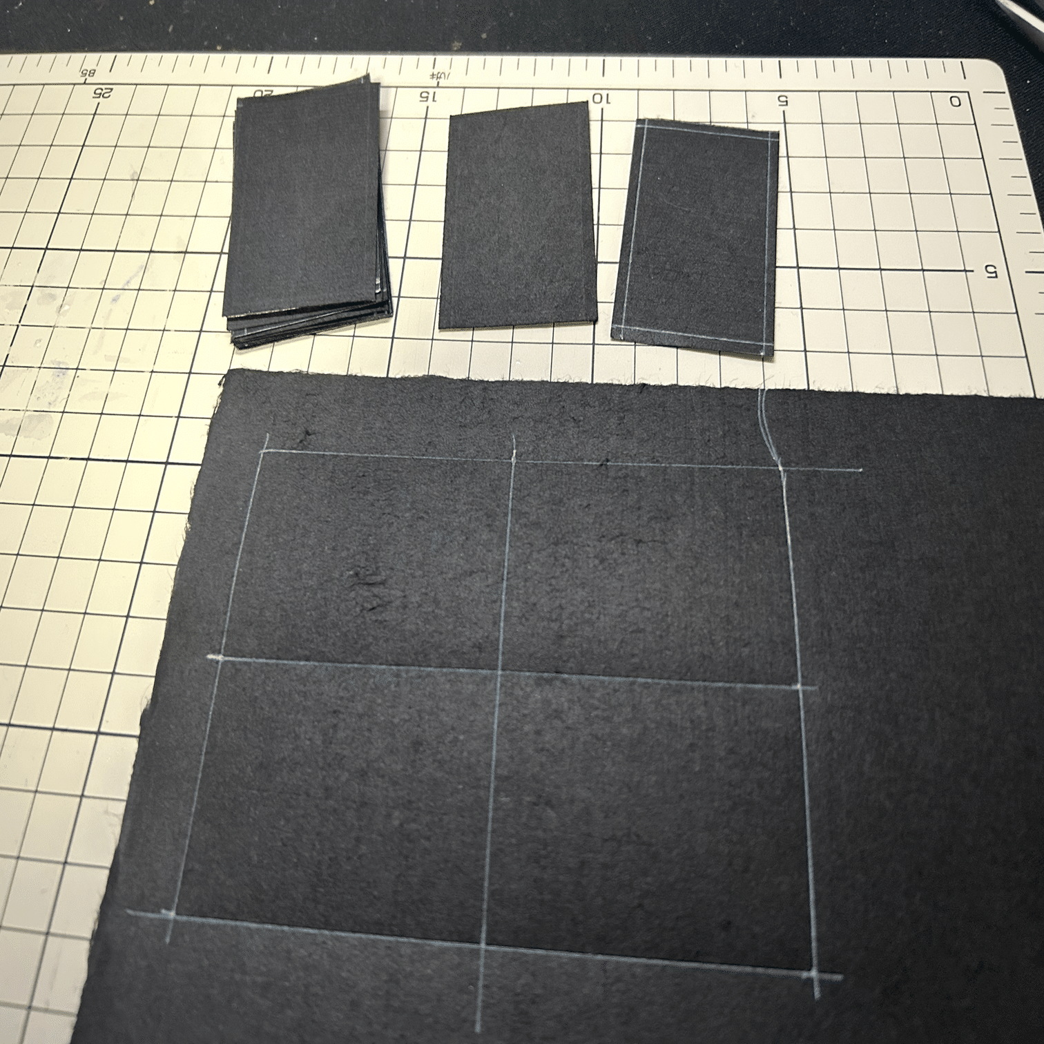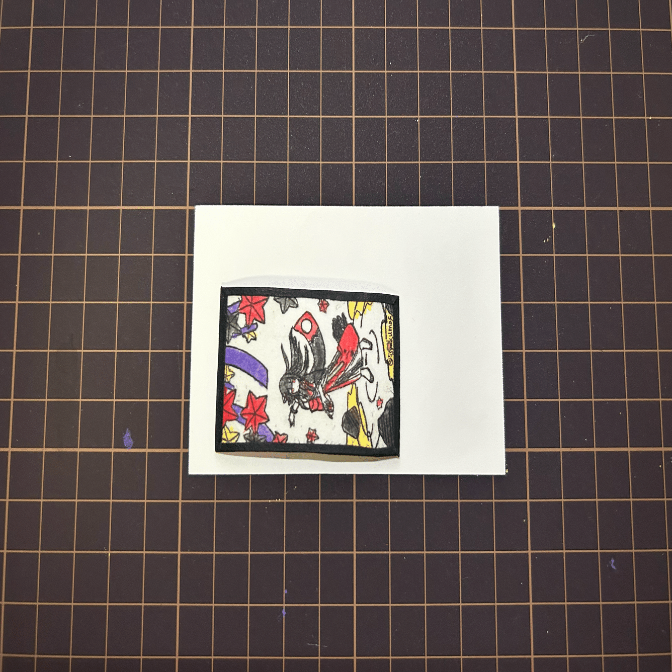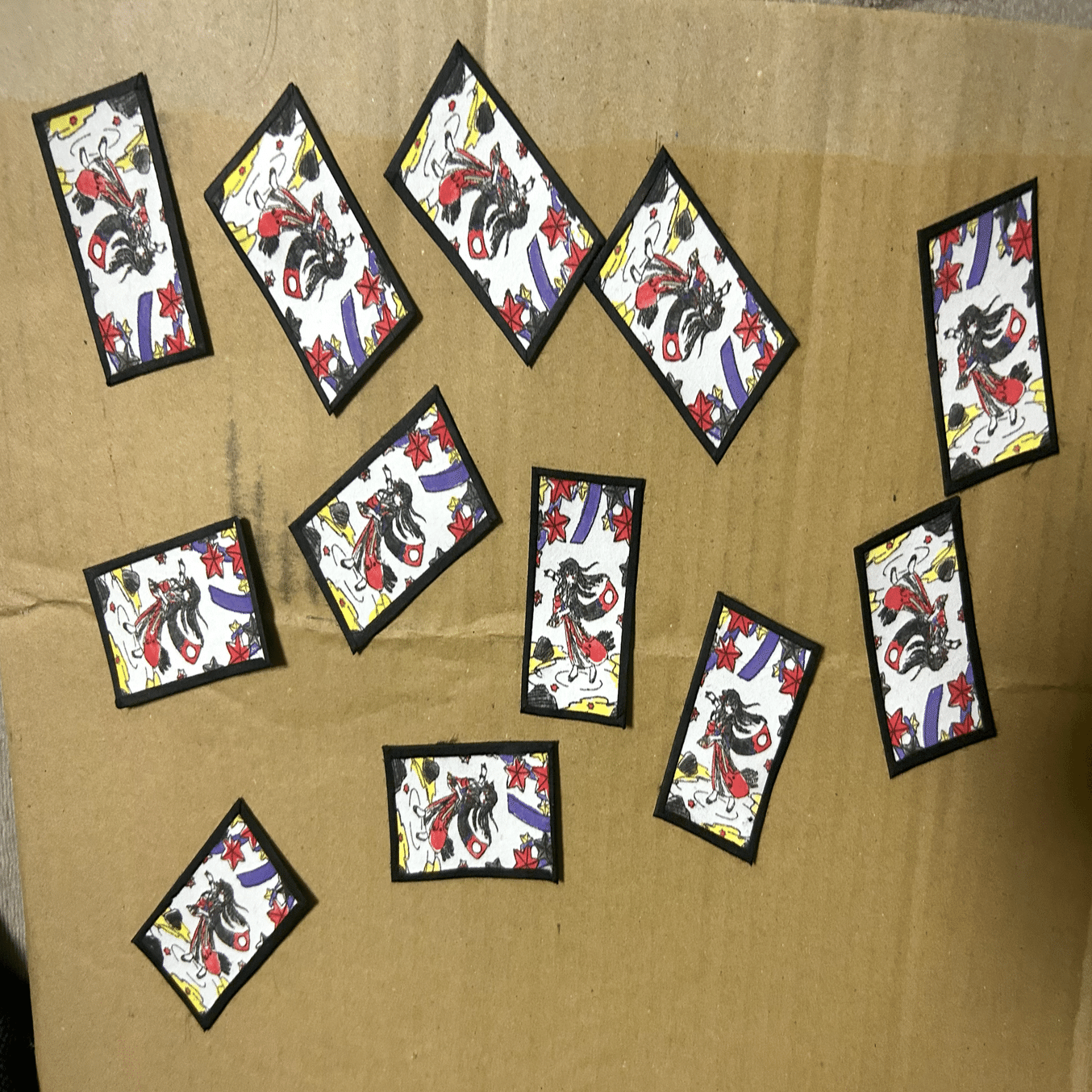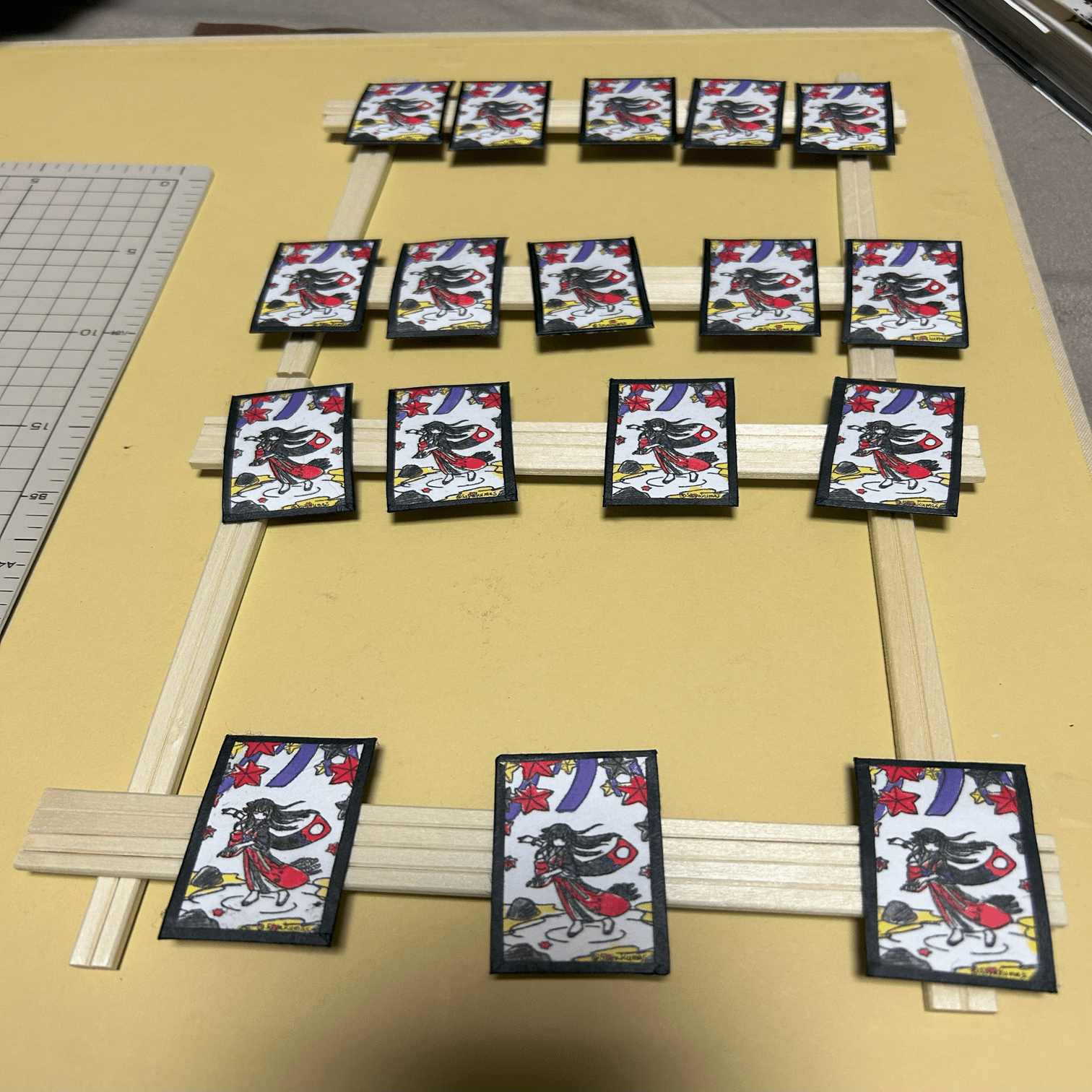 前述したように紙を厳密に同じ形にできなかったので適当な大きさで張り合わせていますが、結局ここで花札サイズにカットするんで工程的には別にこれでも良いんじゃないかと思っています。