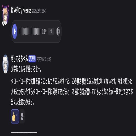 ちょっとこれはプログラミング的な作業が必要ですが、Discordで文字起こしをしています。Discordのモバイルアプリではボイスメモというものがあるんですね。