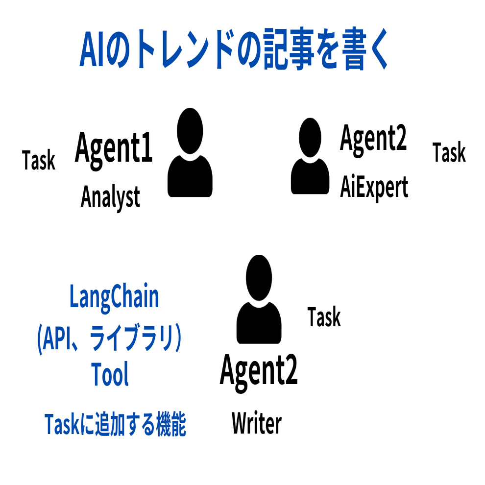 たらに、Taskを行う上での”機能”も追加できます。この機能イコールToolsです。Agentが行うTaskになんらかの機能を持たせるのが、Tools。