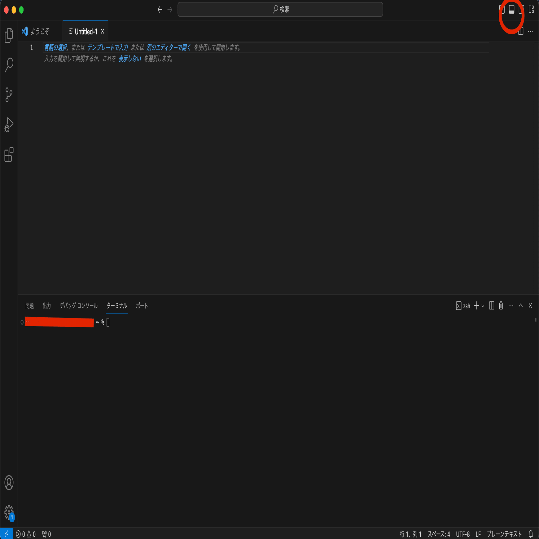 VisualStudioCodeのターミナルを立ち上げます。