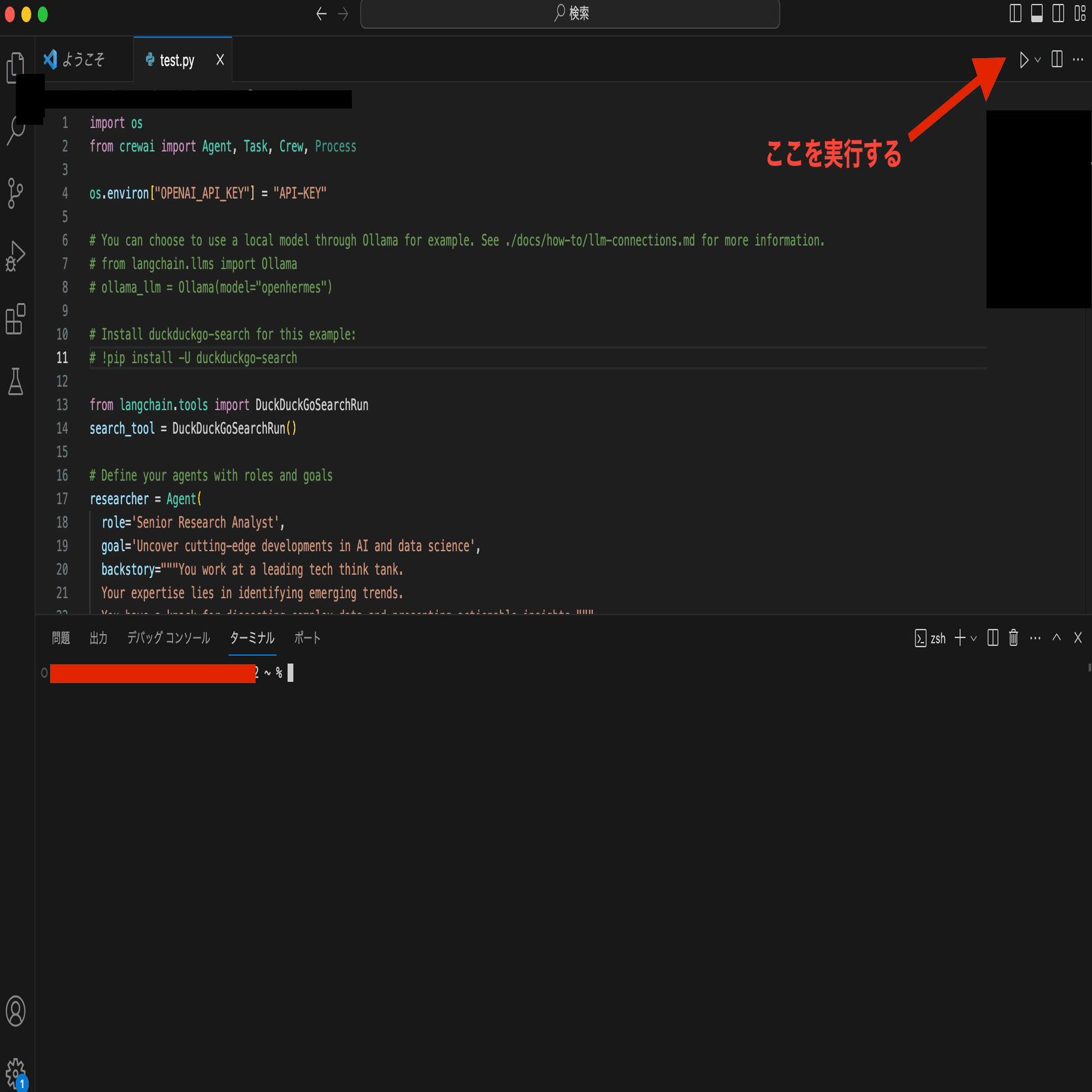 crewAIを動かす流れ